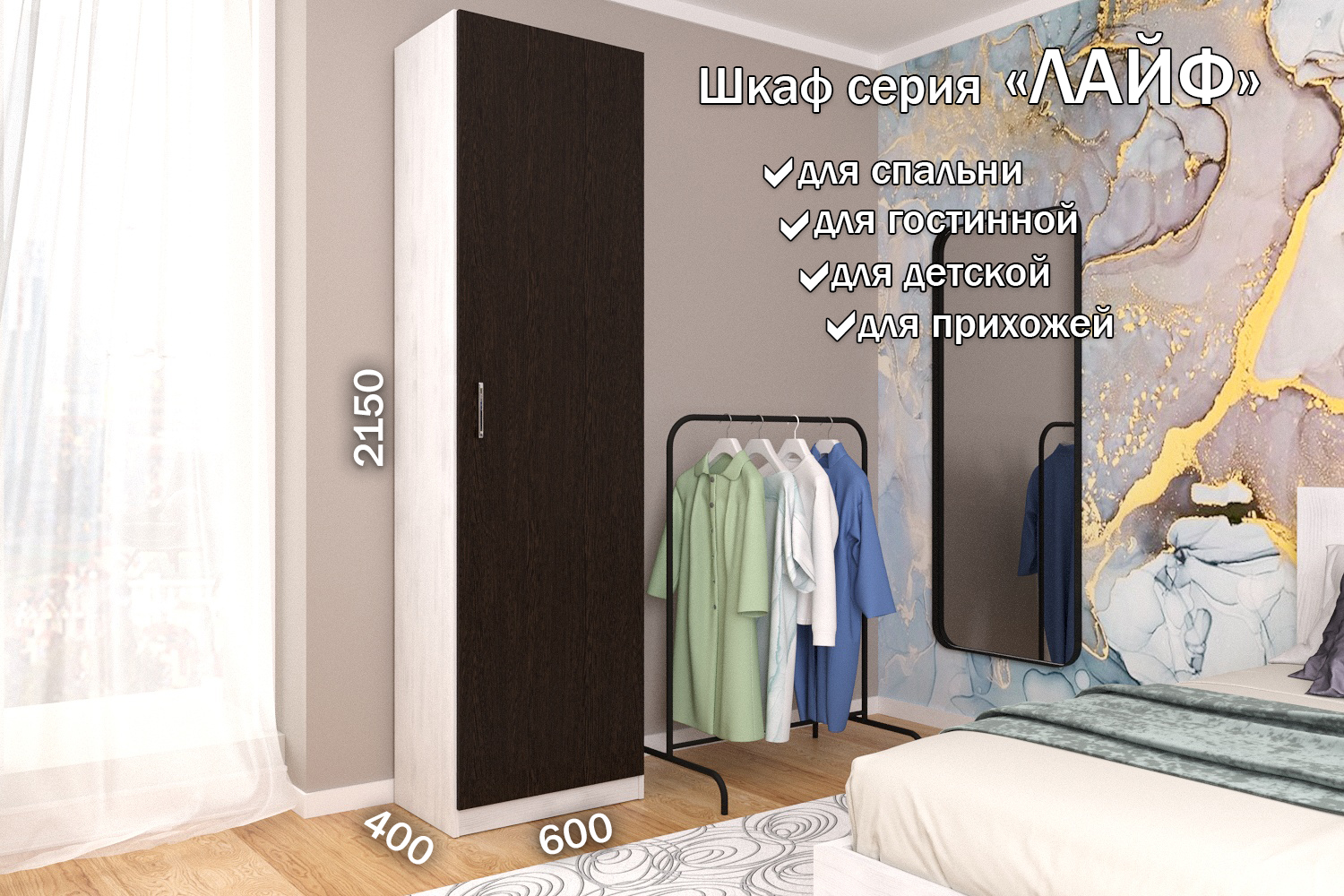 Распашной шкаф Лайф для одежды 60*40*215 Северное дерево (Венге)