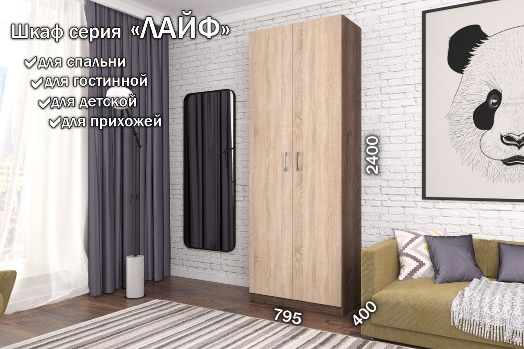 Отзывы о Столплит Распашной шкаф Лайф с полками 80*40*240 Дуб экспрессив Дуб Сонома