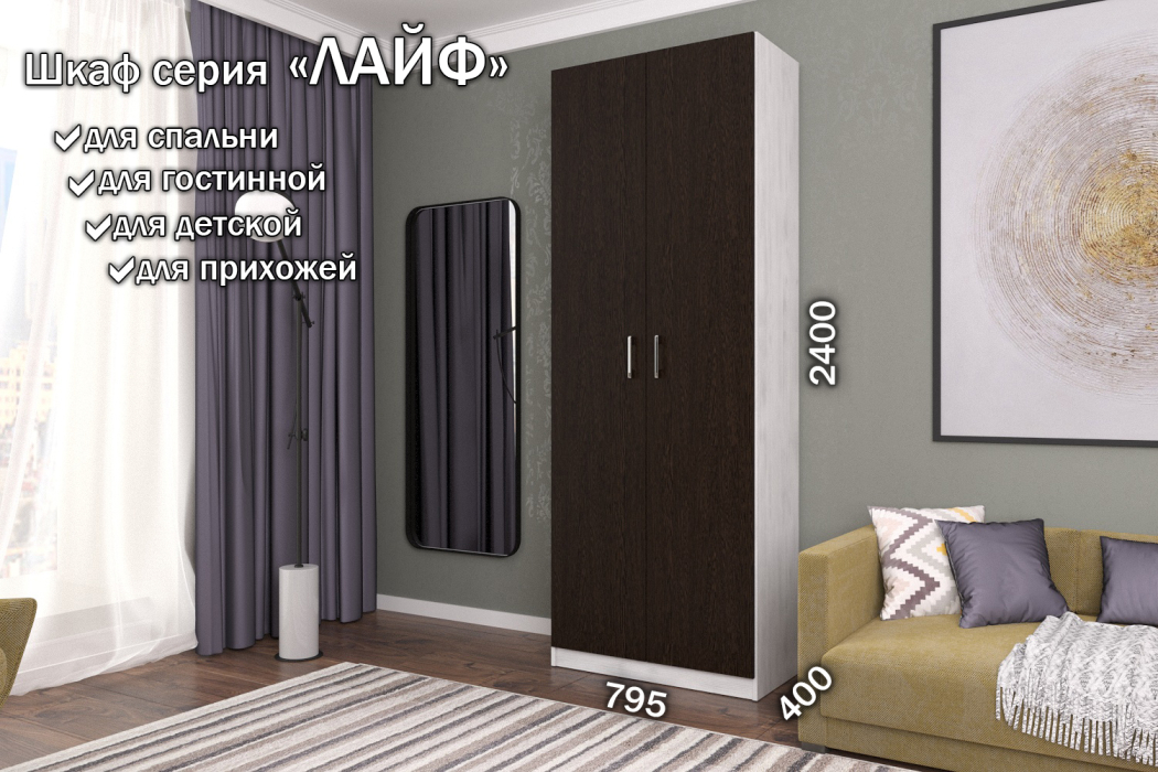 Распашной шкаф Лайф с полками 80*40*240 Северное дерево (Венге)