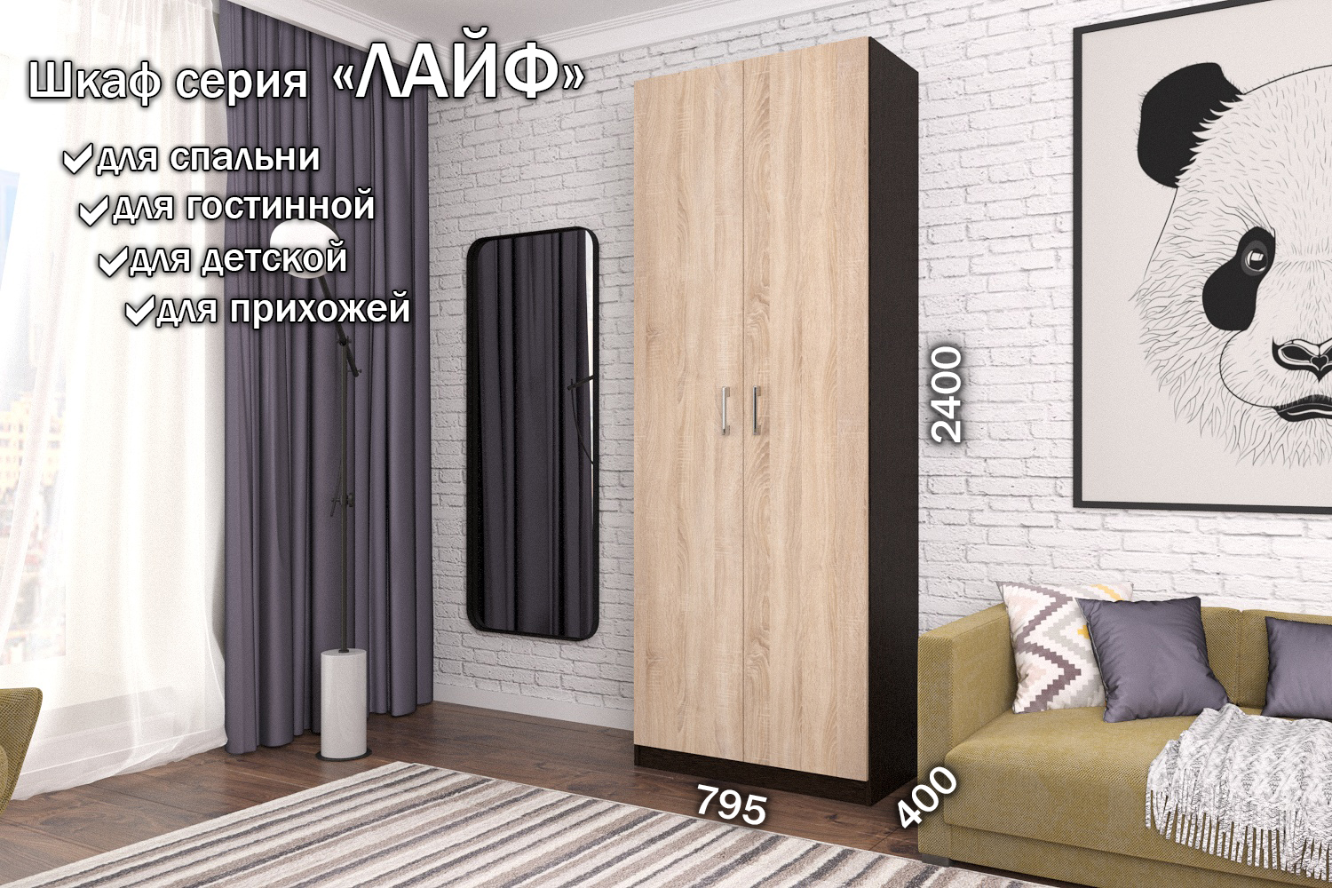 Отзывы о Столплит Распашной шкаф Лайф с полками 80*40*240 Венге Дуб Сонома