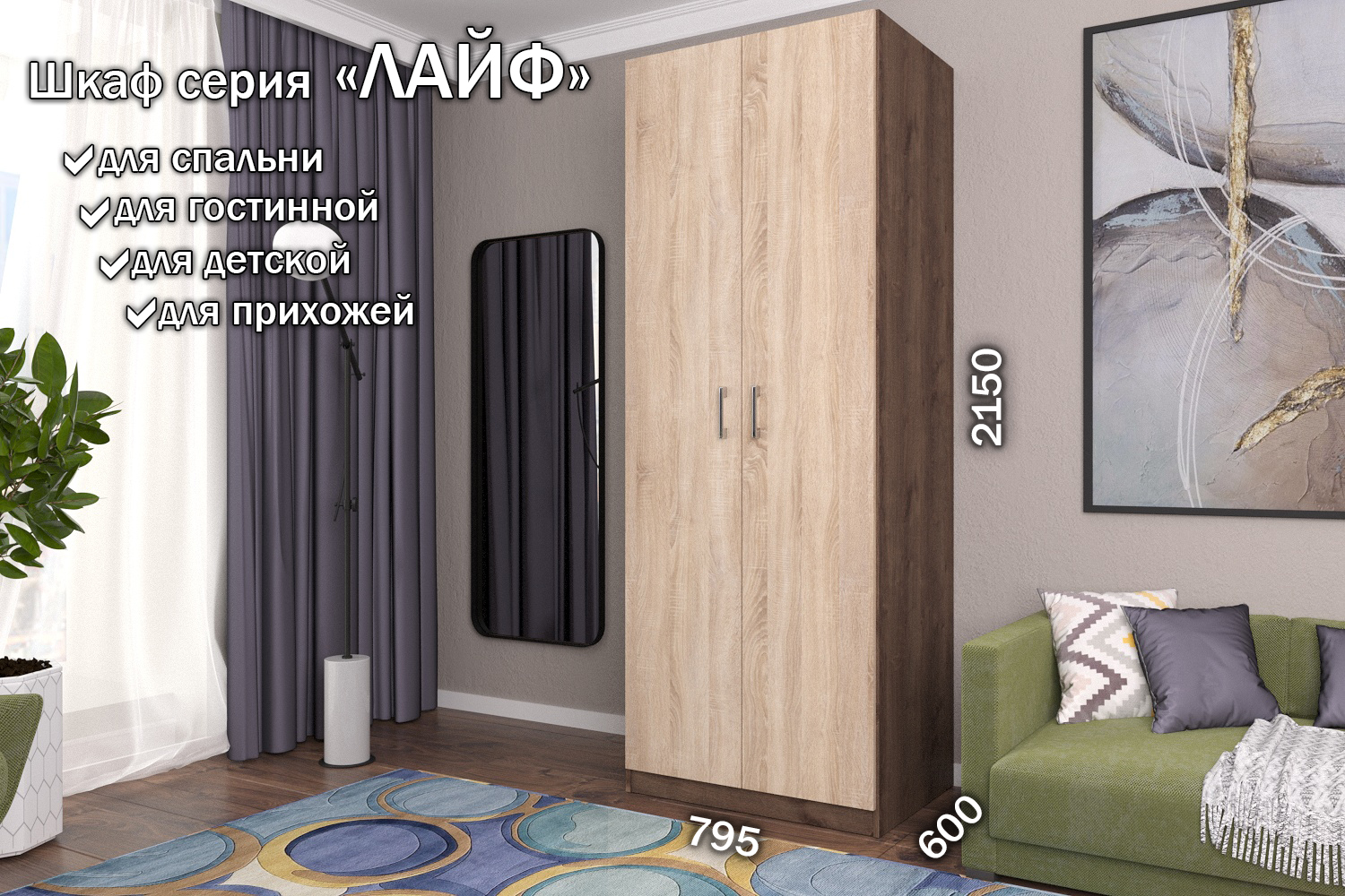 Отзывы о Столплит Распашной шкаф Лайф для одежды 80*60*215 Дуб экспрессив Дуб Сонома