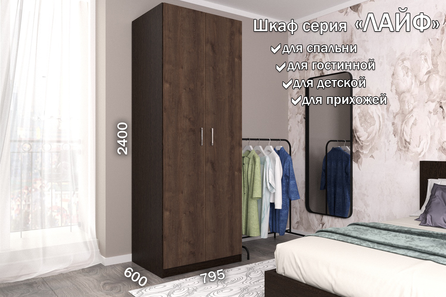 Отзывы о Столплит Распашной шкаф Лайф для одежды 80*60*240 Венге Дуб экспрессив