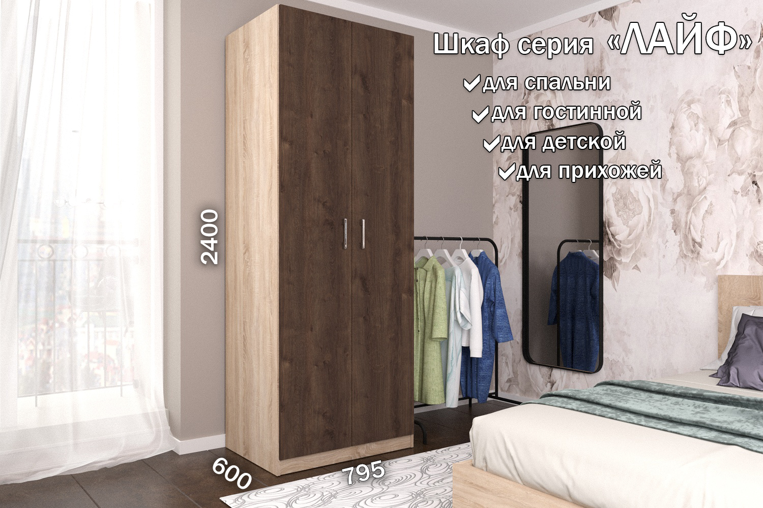 Отзывы о Столплит Распашной шкаф Лайф для одежды 80*60*240 Дуб сонома Дуб экспрессив