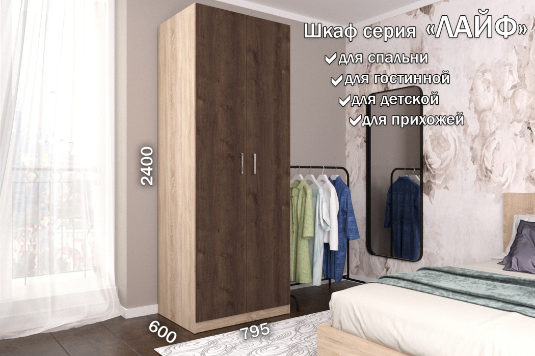 Распашной шкаф Лайф для одежды 80*60*240 Дуб сонома (Дуб экспрессив)