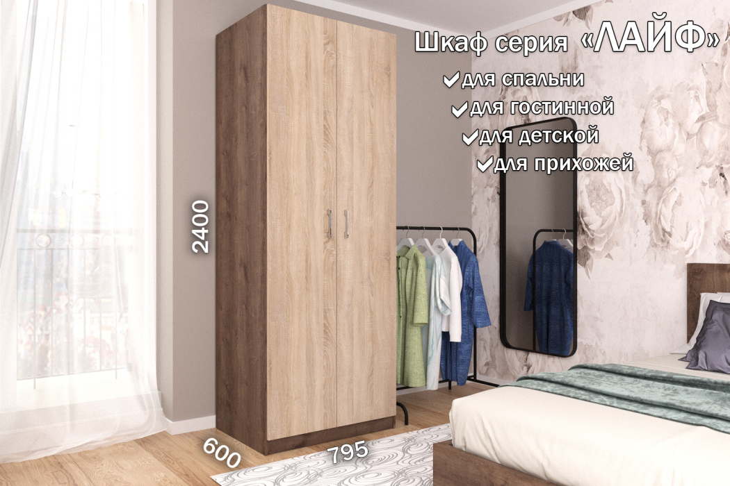 Отзывы о Столплит Распашной шкаф Лайф для одежды 80*60*240 Дуб экспрессив Дуб Сонома
