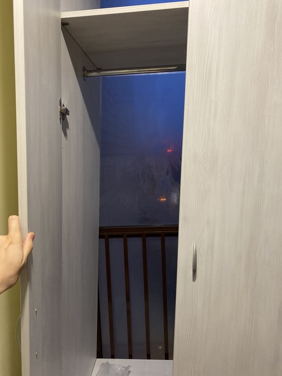 Шкаф планировали поставить на балкон.Перед тем как сборщик приступил к работе, я у него уточнила-можно ли собрать этот шкаф для балкона?Он сказал, можно.Но!когда собрал шкаф, сказал, что заднюю стенку не прибить и будет у вас много света зато...теперь на балконе стоит шкаф без задней стенки и перекошенный.Или выкидывать на мусорку или не знаю, что делать