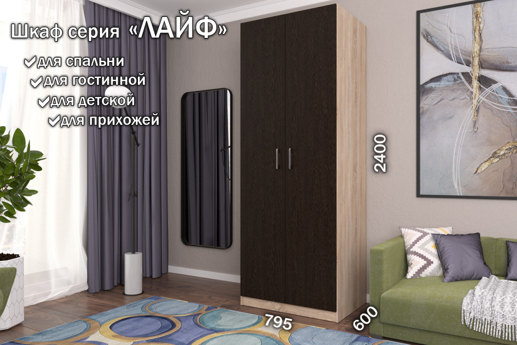 Отзывы о Столплит Распашной шкаф Лайф с полками 80*60*240 Дуб сонома Венге