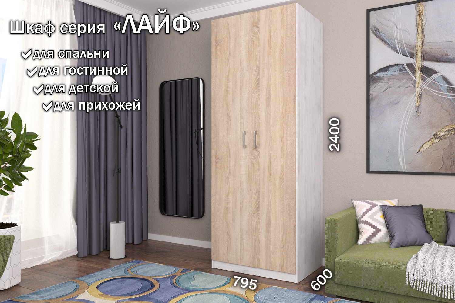 Стильные и удобные корпусные шкафы и наборные корпусные элементы «Лайф» – одно из самых выгодных предложений серийной мебели. Уникальностью данных шкафов, является возможность вносить изменения при сборке. Внутренние детали крепятся на эксцентриках, что позволяет в момент сборки изделия менять секций местами, это дает возможность выбрать максимально удобное расположение. Отличительные особенности шкафов «Лайф» – качественные материалы, удобная комплектация внутреннего наполнения и отличная фурнитура, которая обеспечивает долговечность использования и дает простоту и надежность сборки. Данная серия может комбинироваться в любых четырех цветах на усмотрение и вкус покупателя, независимо от того - корпус это или фасад изделия. Используемые цвета: Венге, Дуб Сонома, Дуб Экспрессив бронзовый, Северное дерево.