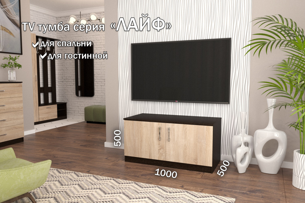 ТВ-тумба Лайф закрытая 100*50*50 Венге (Дуб Сонома)