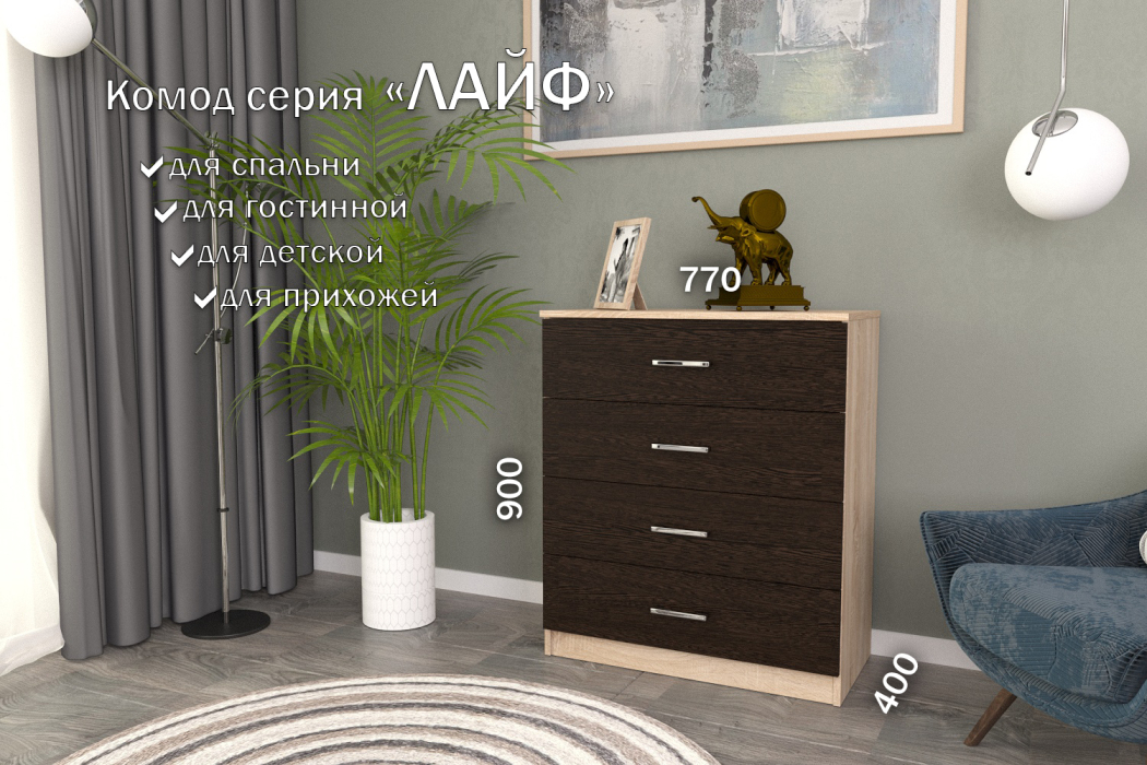 Комод Лайф с ящиками 80*40*90 Дуб сонома (Венге)