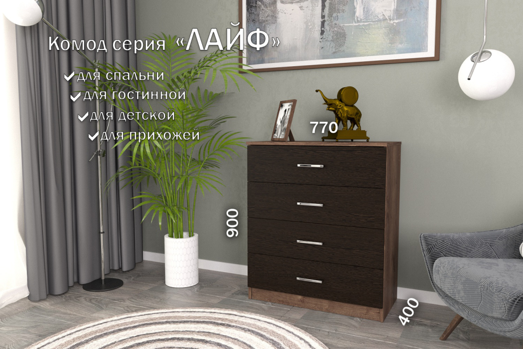 Комод Лайф с ящиками 80*40*90 Дуб экспрессив (Венге)