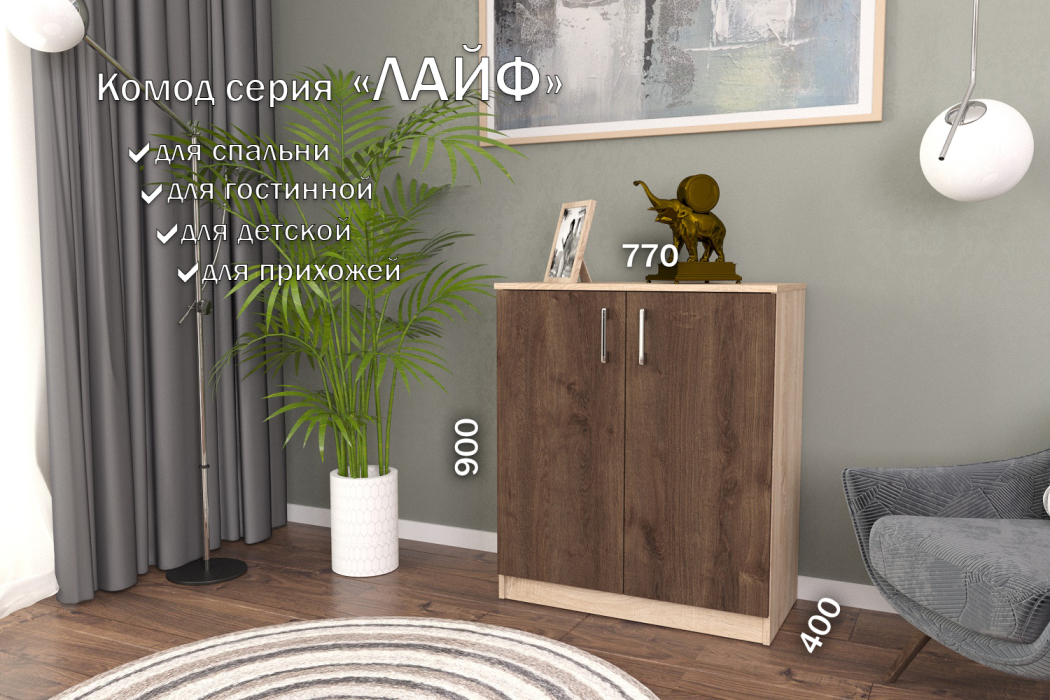 Отзывы о Столплит Комод Лайф 80*40*90 Дуб сонома Дуб экспрессив