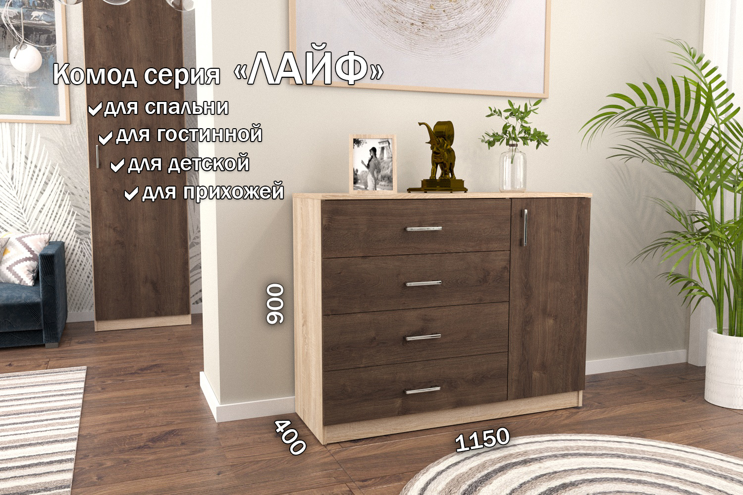 Отзывы о Столплит Комод Лайф 115*40*90 Дуб сонома Дуб экспрессив
