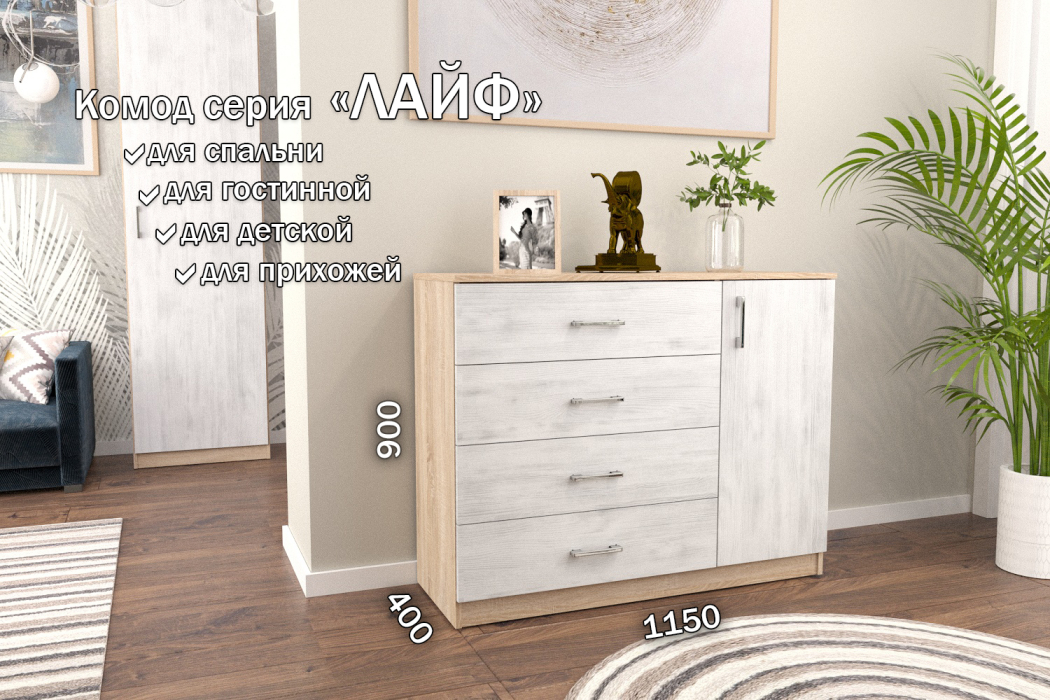 Отзывы о Столплит Комод Лайф 115*40*90 Дуб сонома Северное дерево