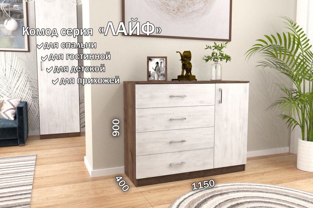 Стильные и удобные корпусные шкафы и наборные корпусные элементы «Лайф» – одно из самых выгодных предложений серийной мебели. Уникальностью данных шкафов, является возможность вносить изменения при сборке. Внутренние детали крепятся на эксцентриках, что позволяет в момент сборки изделия менять секций местами, это дает возможность выбрать максимально удобное расположение. Отличительные особенности шкафов «Лайф» – качественные материалы, удобная комплектация внутреннего наполнения и отличная фурнитура, которая обеспечивает долговечность использования и дает простоту и надежность сборки. Данная серия может комбинироваться в любых четырех цветах на усмотрение и вкус покупателя, независимо от того - корпус это или фасад изделия. Используемые цвета: Венге, Дуб Сонома, Дуб Экспрессив бронзовый, Северное дерево.