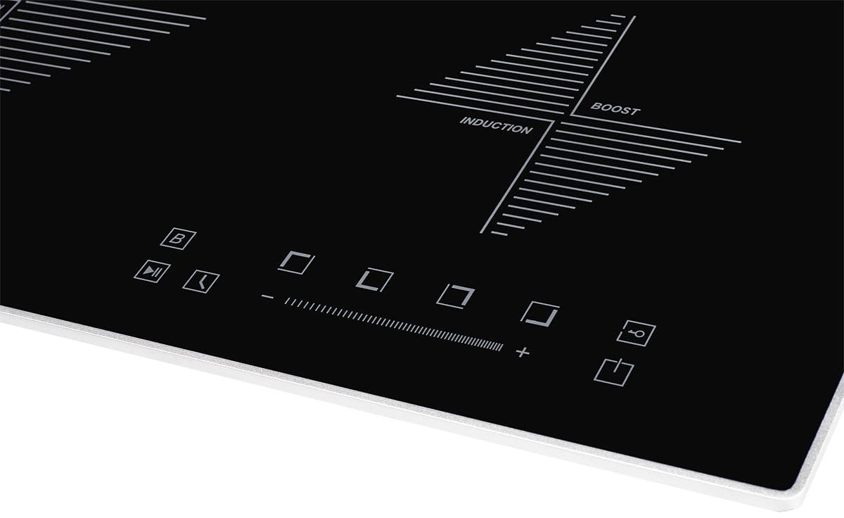 Индукционная варочная поверхность стеклокерамическая,ширина 60 см, 2 зоны 1,5 кВт(BOOSTER 2 кВт), 2 зоны 2 кВт(BOOSTER 3 кВт),электронное сенсорное управление + слайдер, 5 цифровых дисплев, 9 уровней мощности,автоматическое отключение,автоматика закипания,защита от детей/блокировка панели управления,индикаторы остаточного тепла, Таймер, Stop & Go.