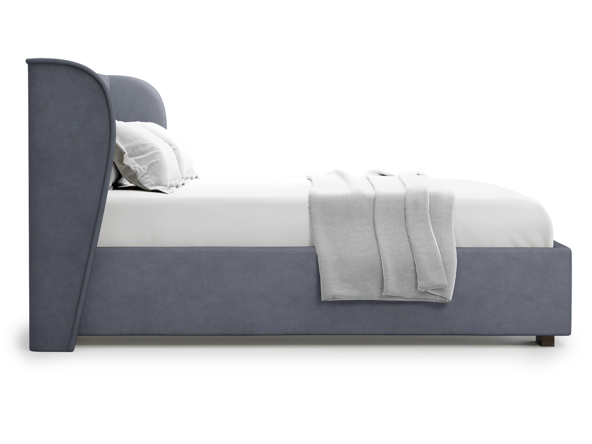 Модель выполнена в стиле неоклассика, имеет мягкие формы располагающие к расслабленному отдыху. Массивное основание на ножках и с мягким изголовьем. В комплект входит подъемный механизм с двумя ящиками для хранения белья и ортопедическое основание .Материалы используемые в производстве: Брус,МДФ , ЛДСП,ППУ, Короб для белья, обивочный материал велюр.