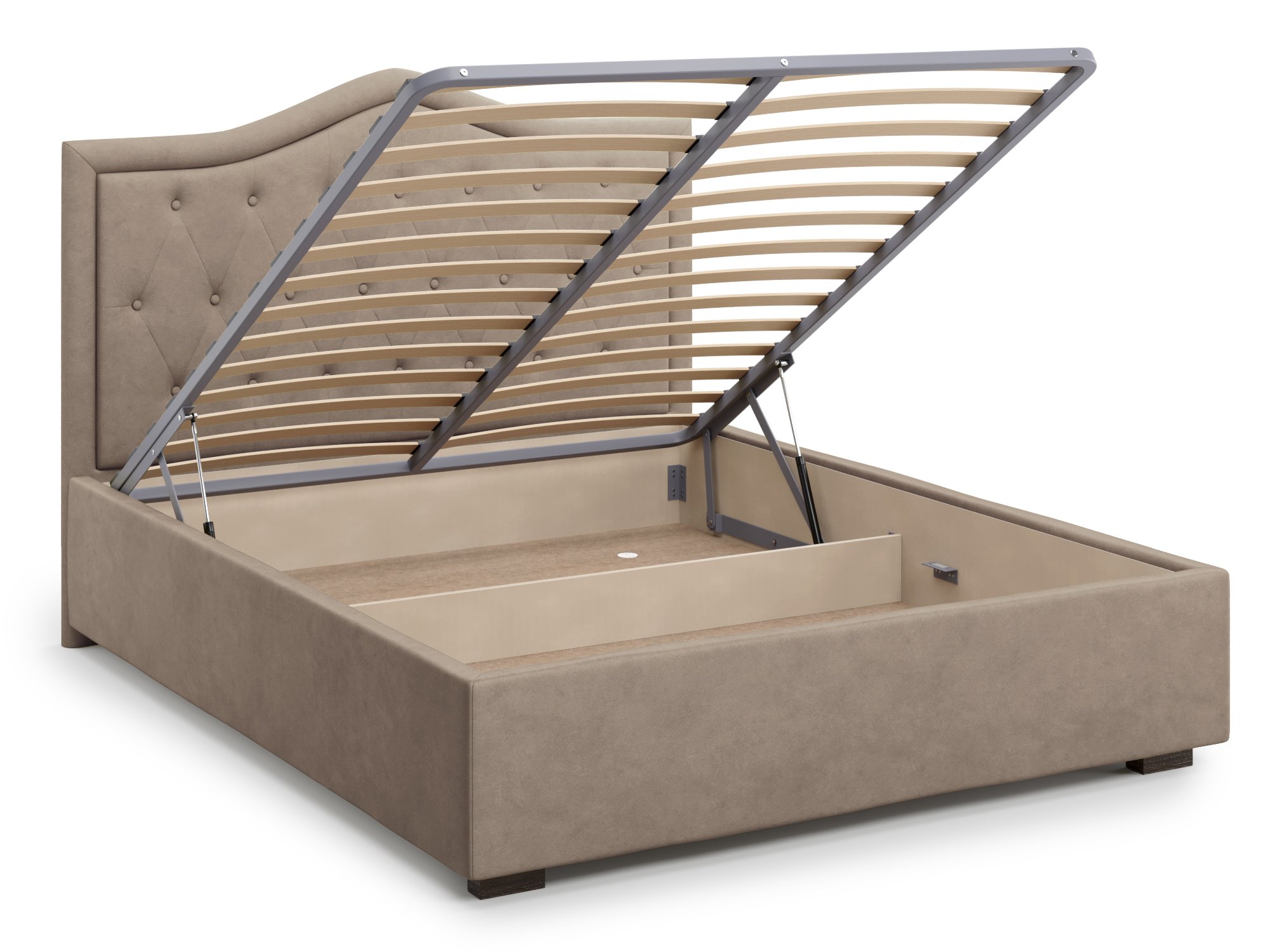 Модель выполнена в стиле неоклассика, имеет мягкие формы располагающие к расслабленному отдыху. Массивное основание на ножках и с мягким изголовьем. В комплект входит подъемный механизм с двумя ящиками для хранения белья и ортопедическое основание .Материалы используемые в производстве: Брус,МДФ , ЛДСП,ППУ, Короб для белья, обивочный материал велюр.