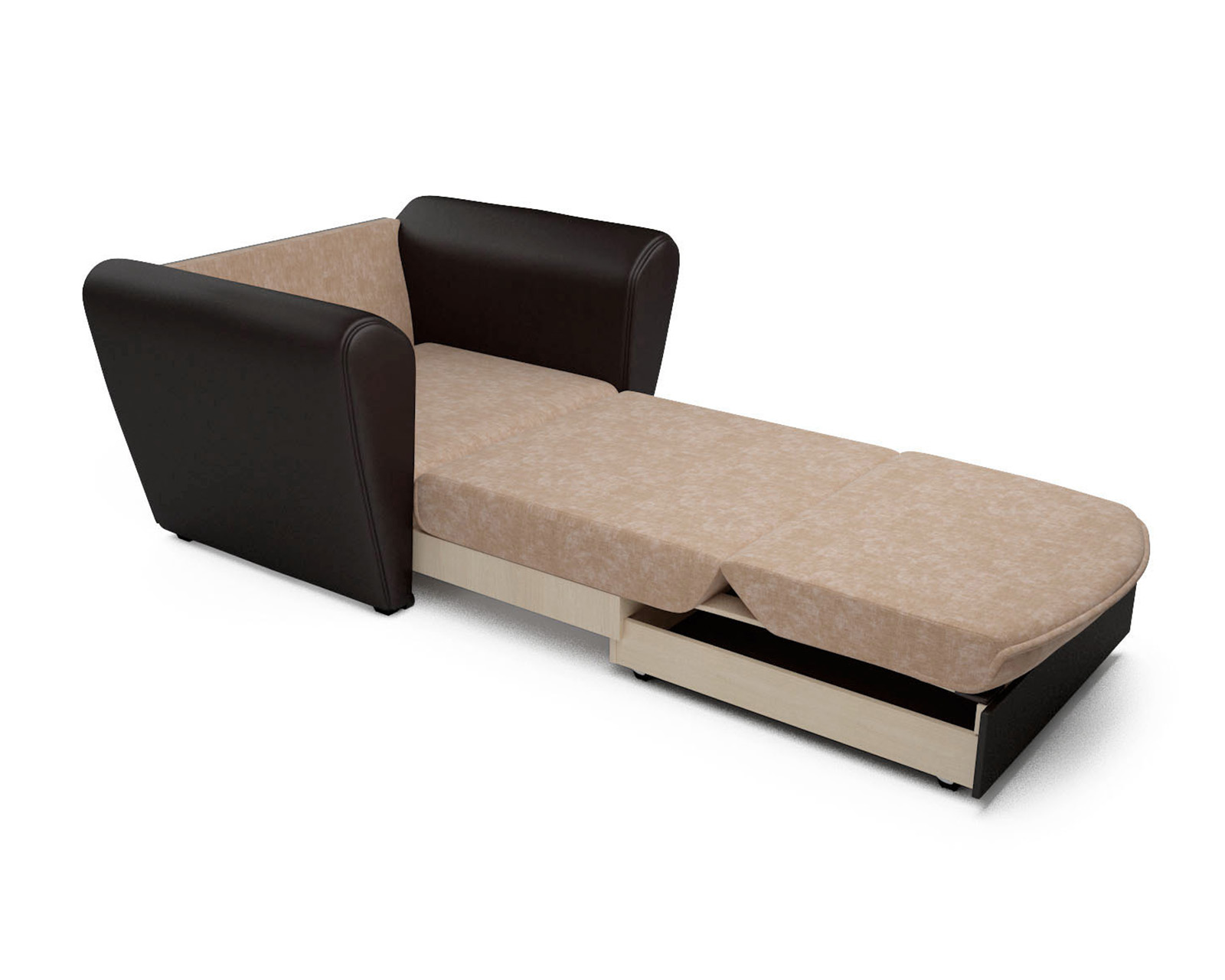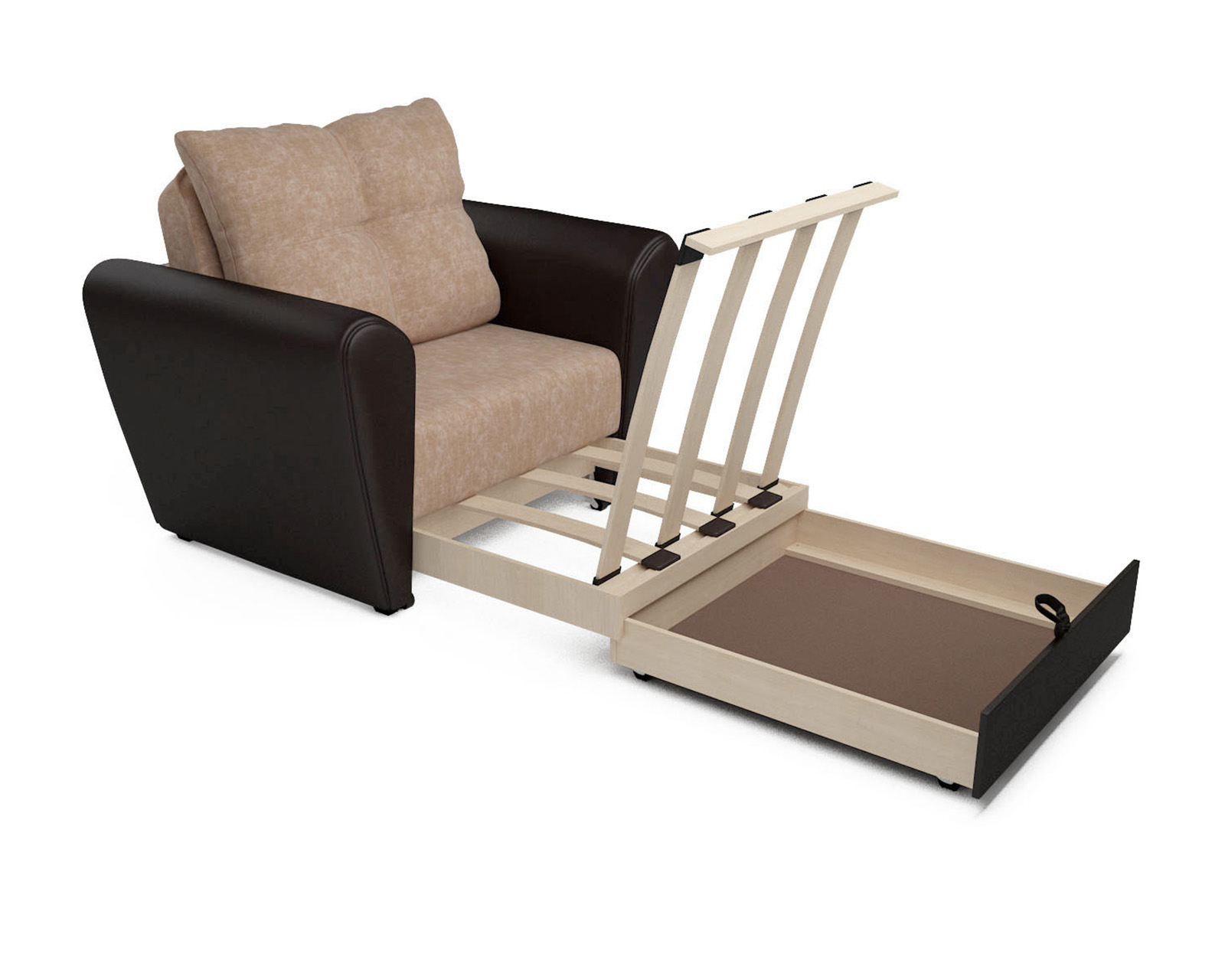 Выкатной механизм трансформации обеспечивает раскладывание спального места путем выдвижения нижней секции вперед. Кресло-кровать «Квартет» оборудован ящиком для белья, что также является безусловным плюсом, так как обеспечивает дополнительное место для хранения пастельных принадлежностей.