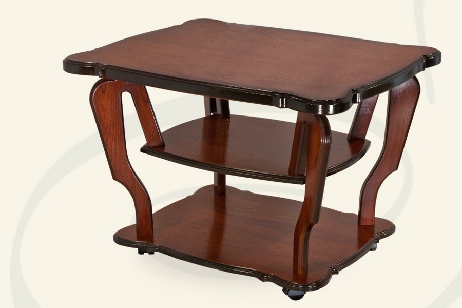 Журнальный столик выполнен из натурального шпона красного дерева.