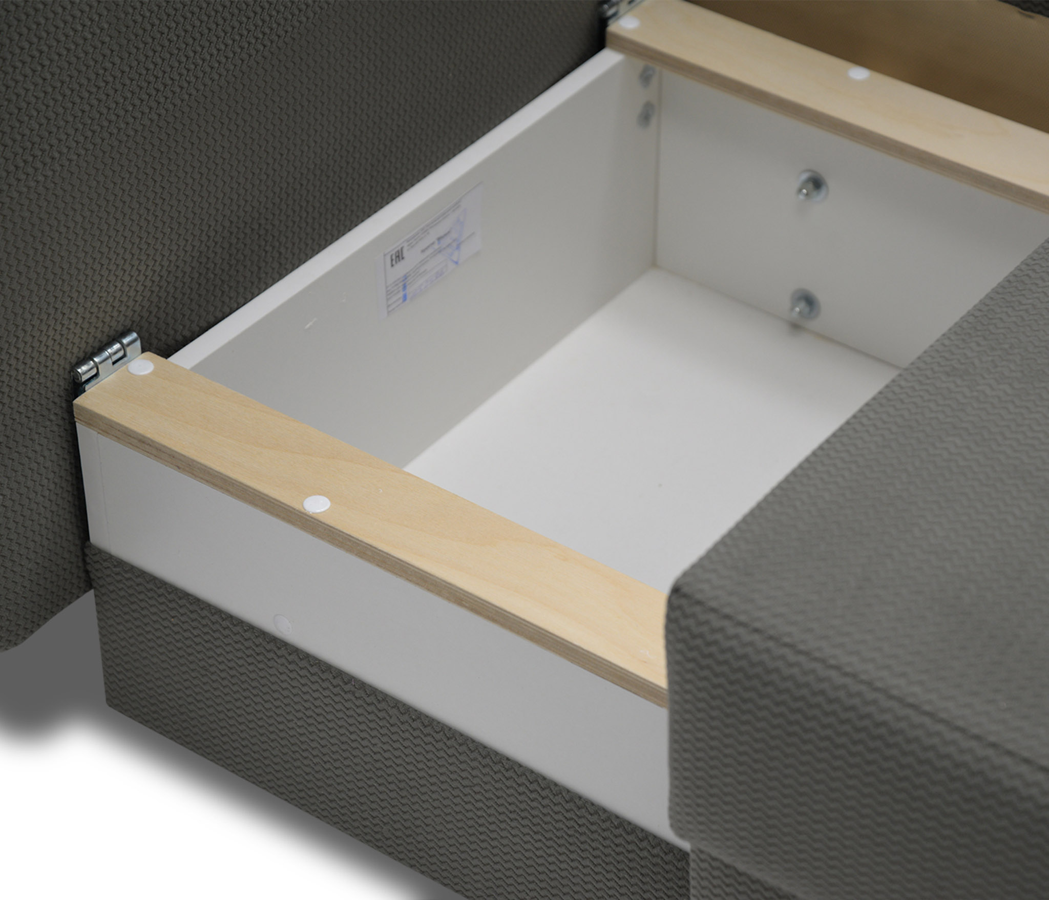 Механизм трансформации. Еврокнижка очень простой и надежный механизм. Принцип действия: Сидение нужно потянуть «на себя» до упора. Между спинкой и сиденьем образуется ниша, при этом бельевой ящик открыт, можно им пользоваться. После того, как сиденье отведено вперед до упора, спинку опускают в освободившуюся нишу. Еврокнижка отличается ровным спальным местом и высокой надежностью