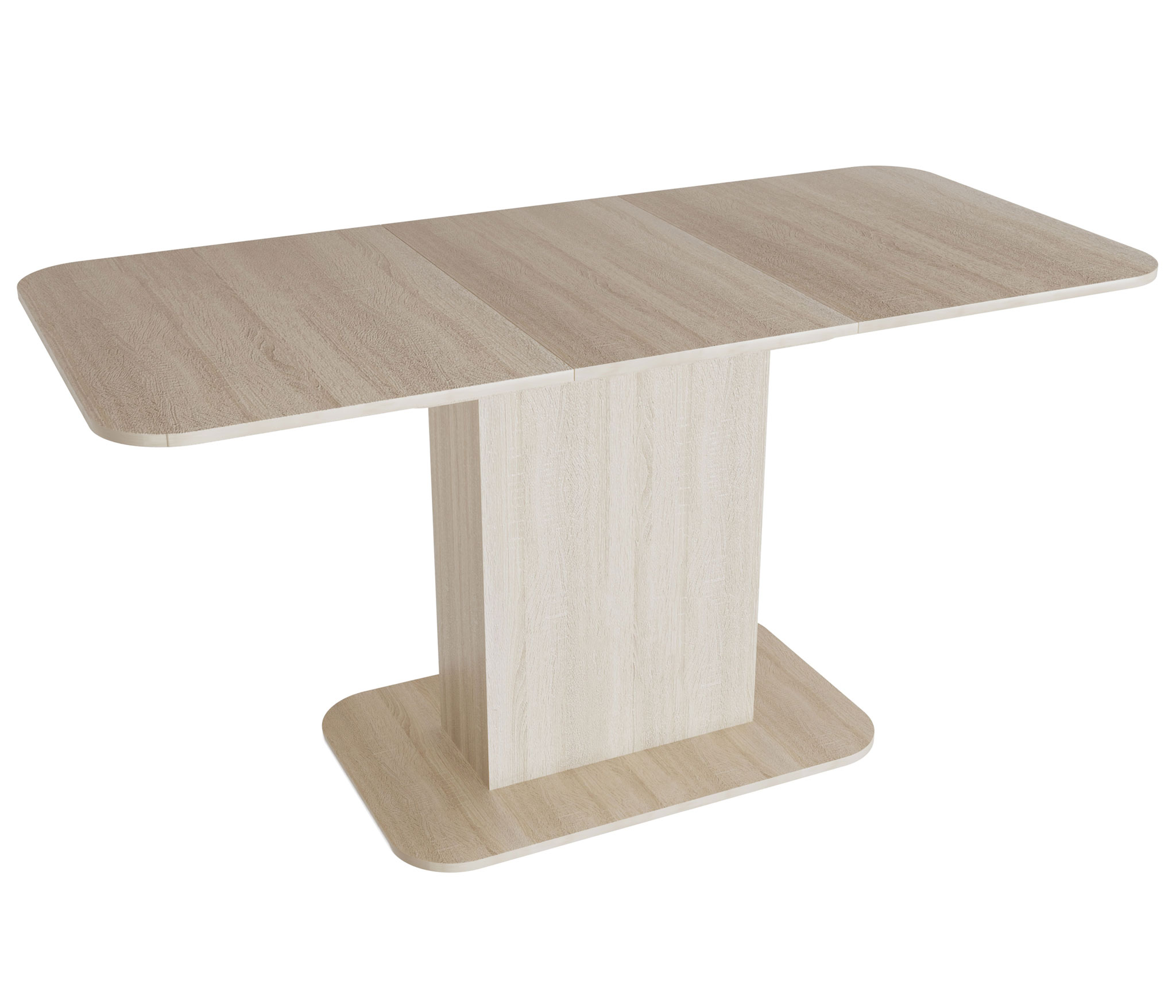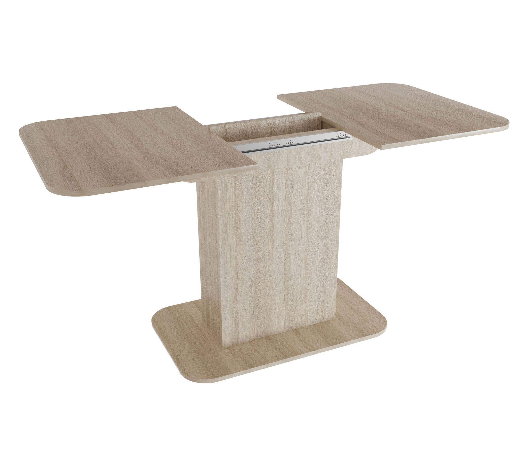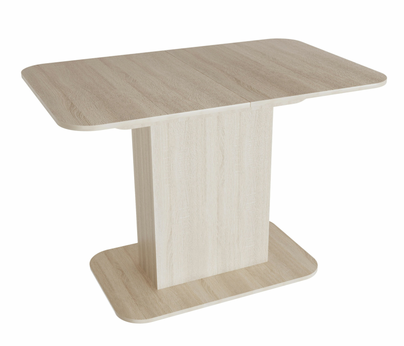 Раскладной обеденный стол Форт. Габариты стола позволяют разместить его в небольшом помещении. при необходимости столешница раздвигается до 150 см. Направляющие оснащены стопорами, исключающими самопроизвольную трансформацию стола. Внутри колоннообразной опоры предусмотрена ниша, в которой хранится дополнительная центральная вставка (40 см). Столешница - ЛДСП (16 мм). Размер основания: 80х50 см. Основание стола - высококачественный Лдсп в кромке пвх 2мм. Габаритные размеры (см):