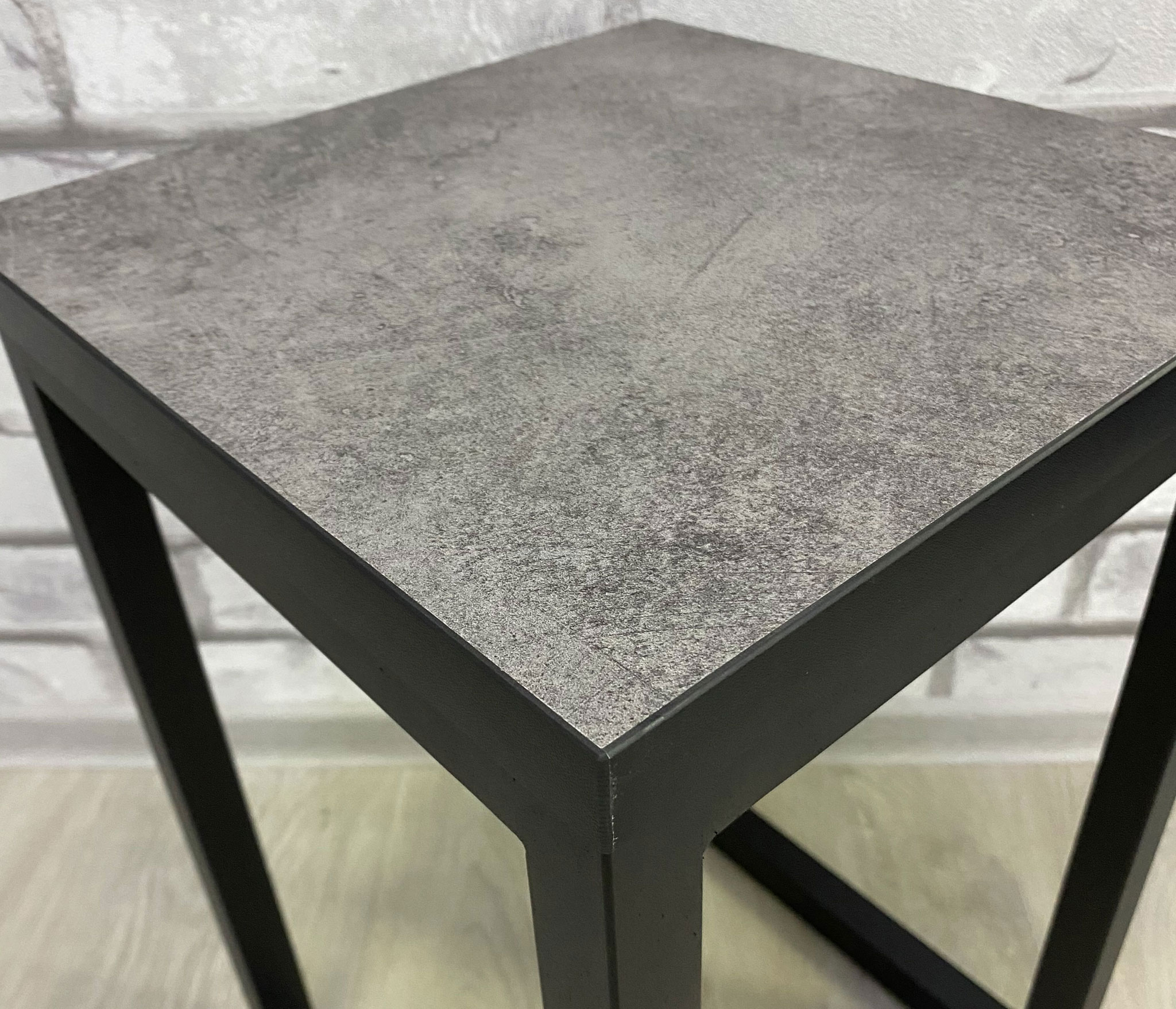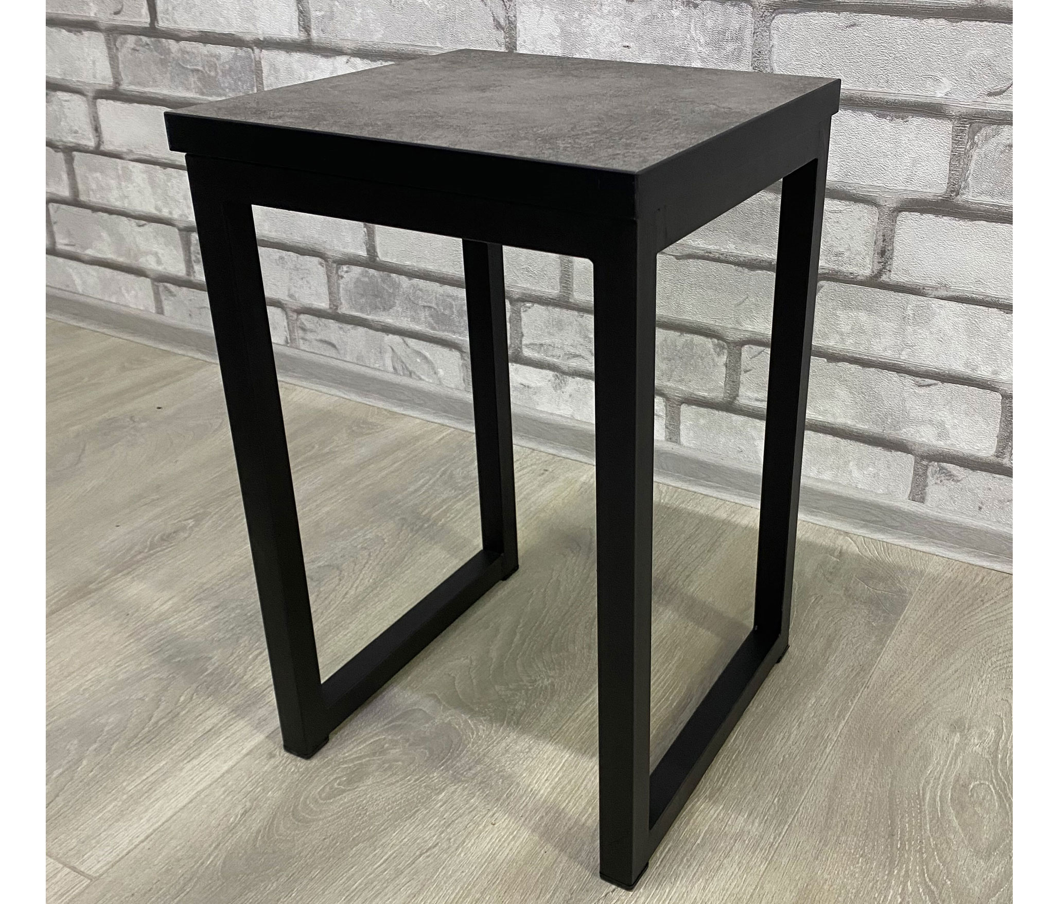 Табурет в стиле лофт на металлическом основании. Ножки - труба профильная, толщина стенки 1.2мм в порошковой окраске. Сиденье - ЛДСП, покрыто HPL пластиком в цвете Бетон 809. Станет идеальным дополнением к столу Саен в том же цвете.