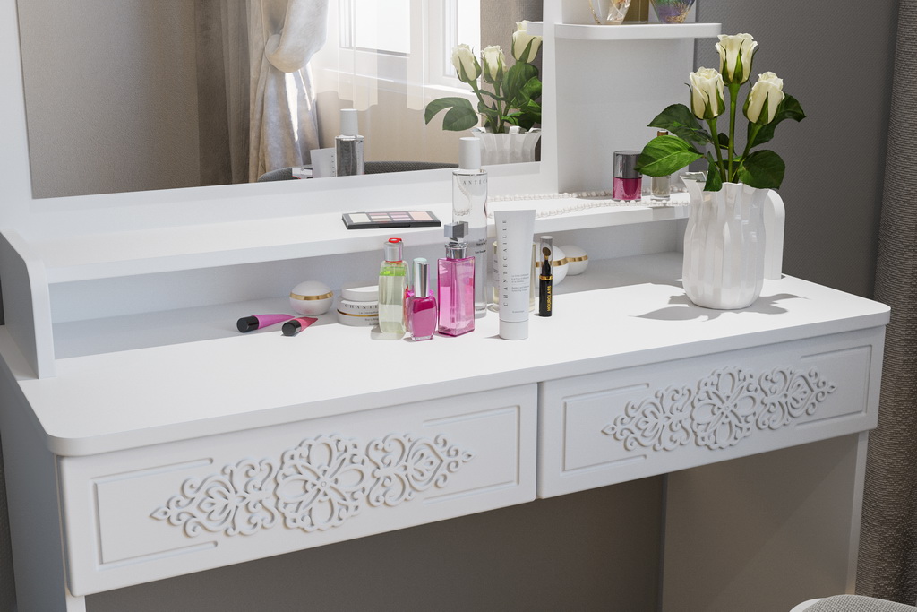 Туалетный столик – неотъемлемая часть спальни или женской комнаты. Каждая девочка, девушка или дама хочет иметь собственное пространство, свой уголок красоты, для того чтобы привести себя в порядок, нанести макияж, удобно и компактно расставить свою косметику и парфюмерию, аккуратно сложить украшения и аксессуары.