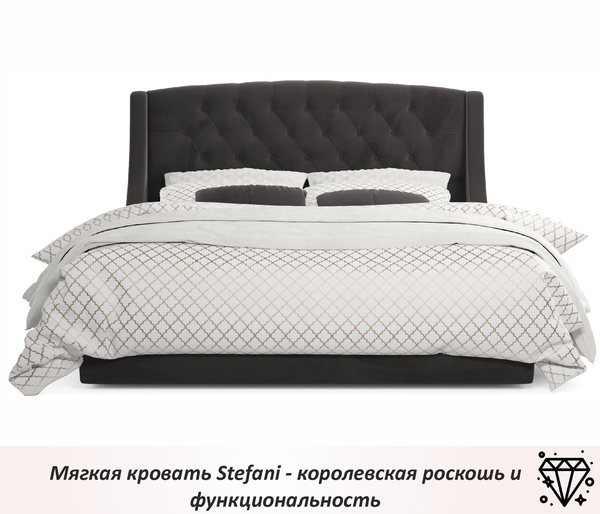 Ценители прекрасного поистине оценят мягкую интерьерную двуспальную кровать 160х200 из ткани с подъемным механизмом и высоким изголовьем “Stefani”.