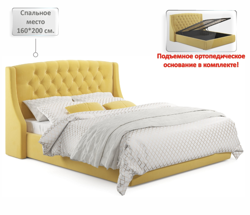 Отзывы о Столплит Мягкая кровать Stefani 1600 с подъемным механизмом Желтый
