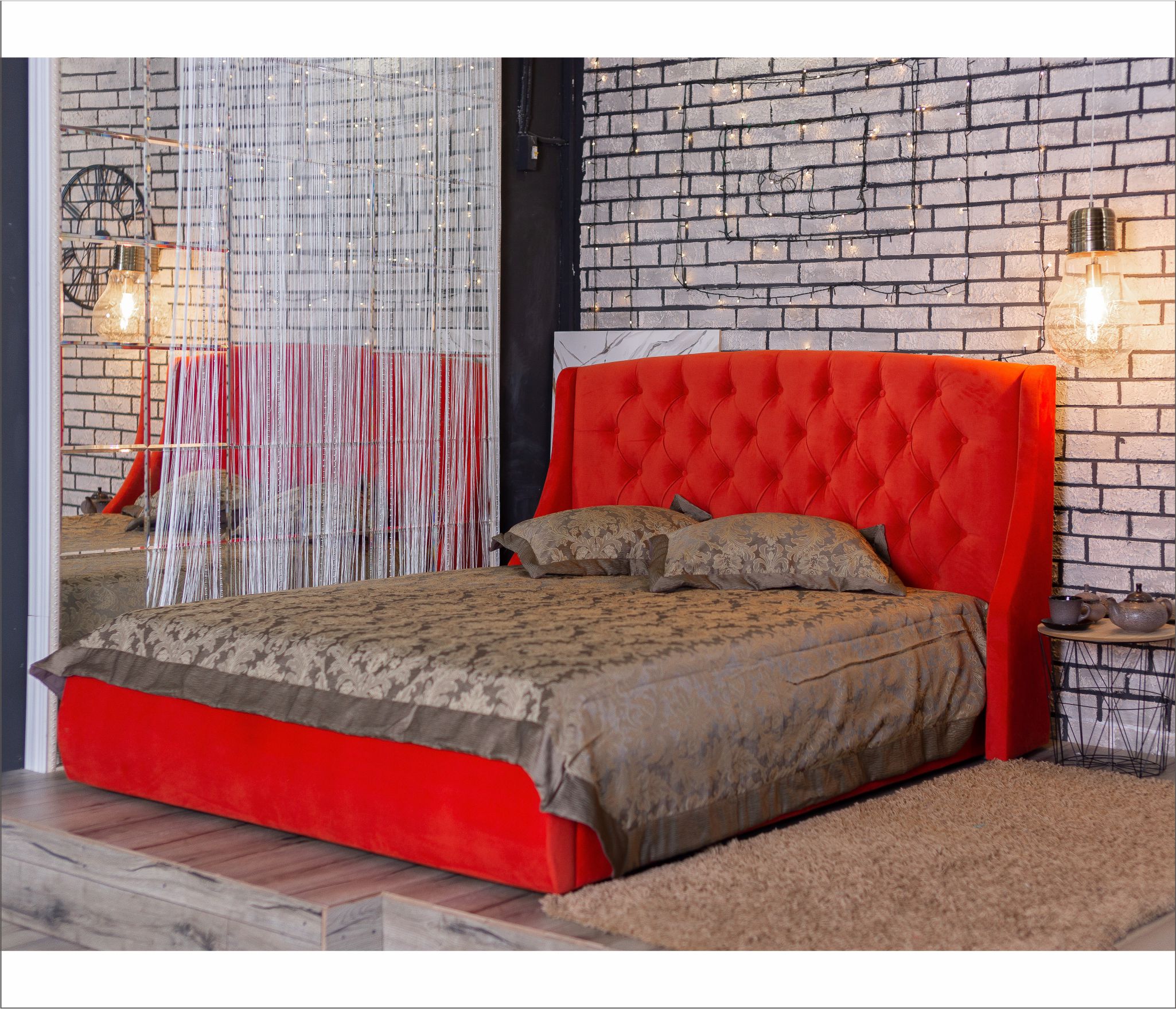 Ценители прекрасного поистине оценят мягкую интерьерную двуспальную кровать из ткани с высоким изголовьем и ортопедическим основанием “Stefani”.