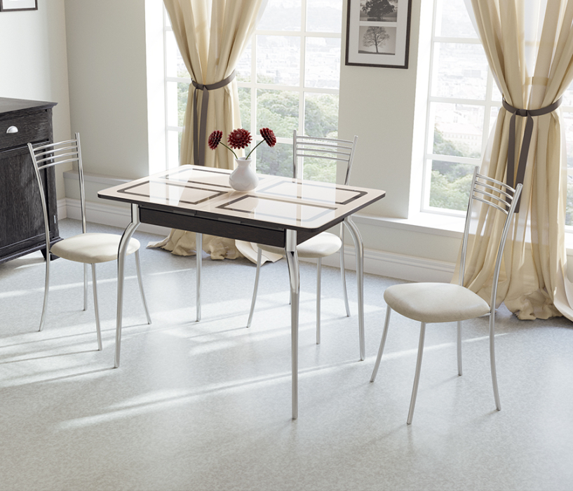 Стол обеденный Рим СМ-218.01.01 на металлических ножках Т1 (Венге/бежевый)
