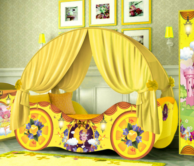 Кровать детская КАРЕТА ПРИНЦЕССА 4.0 для девочки, 155х85х60 (h160) (Желтый)