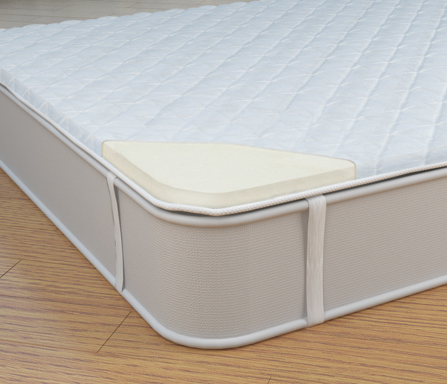 Крепится к матрасу при помощи эластичных крепежей, расположенных по углам наматрасника.