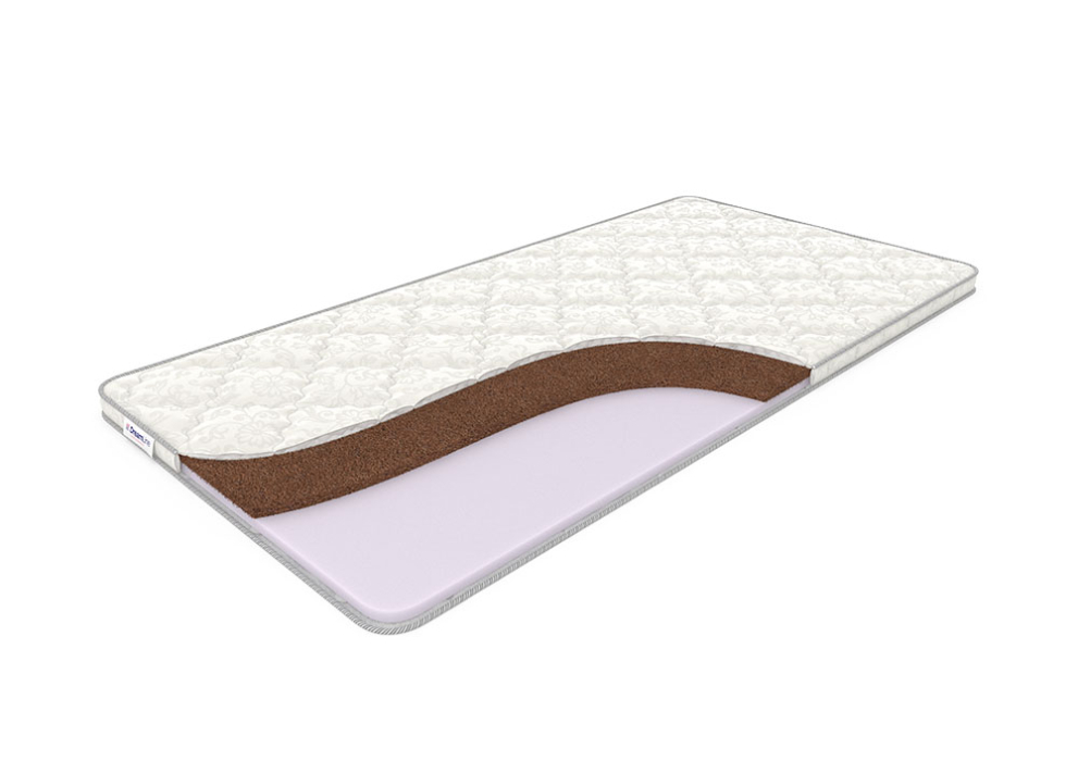 Наполнитель из латексированной кокосовой койры толщиной 20 мм увеличивает жёсткость матраса. Эластичная пена уменьшает жёсткость спального места и препятствует проникновению влаги.