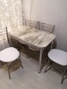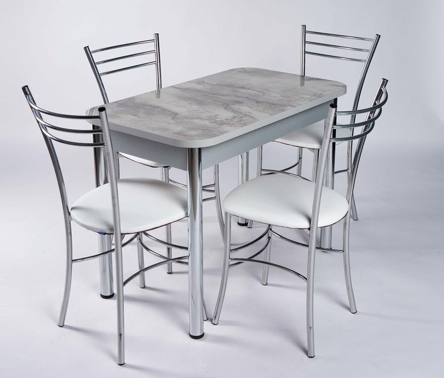 Обеденная группа ПФ/Цезарь состоит из стола размер 58*100*75 и 4-х стульев.Столешница стола 22 мм.Стулья на металлокаркасе обивка экокожа.