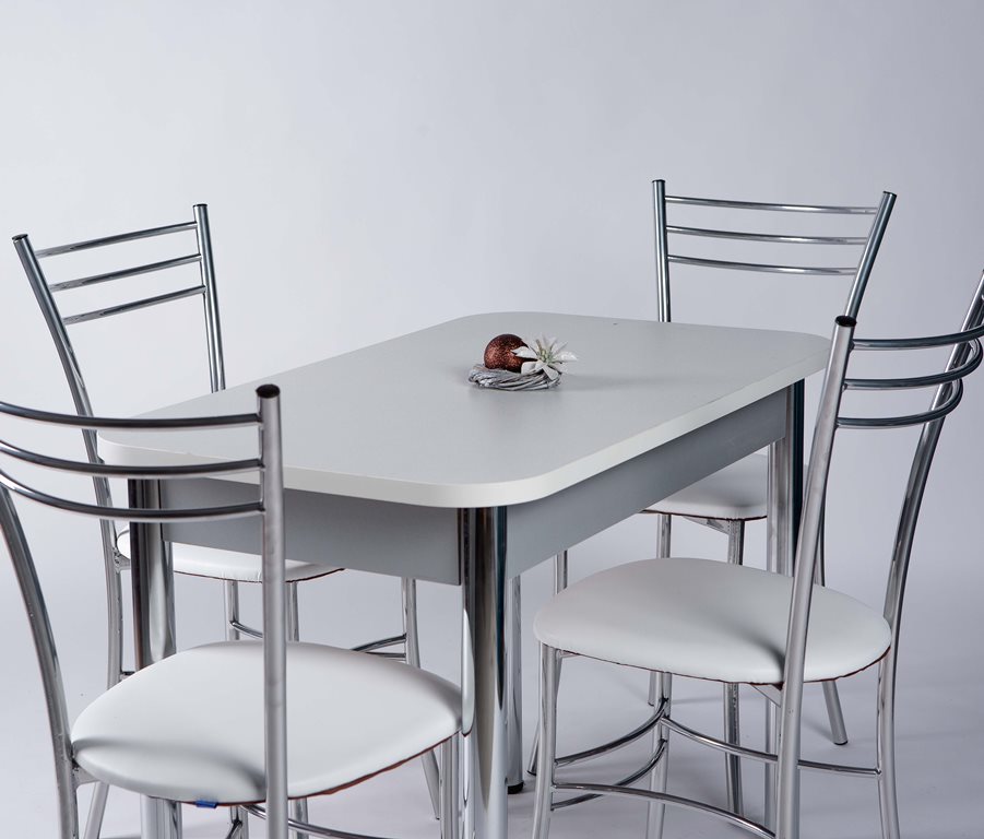 Обеденная группа ПФ/Цезарь состоит из стола размер 58*100*75 и 4-х стульев.Столешница стола 22 мм.Стулья на металлокаркасе обивка экокожа.
