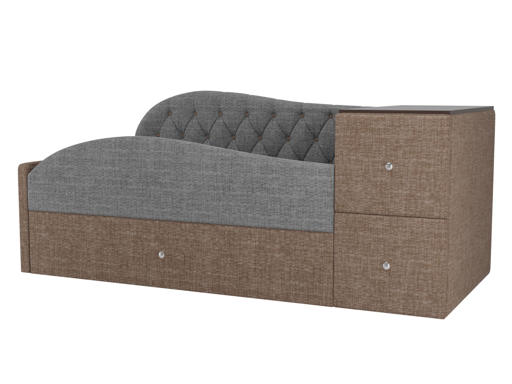 Детская кровать Джуниор,рогожка,левый угол (Рогожка Коричневая/Серая)
