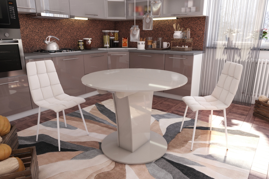 Круглый кухонный стол TURIN поможет вам стильно и практично оформить обеденную зону кухни или гостиной. В разобранном виде стол позволит с комфортом разместить до шести человек.