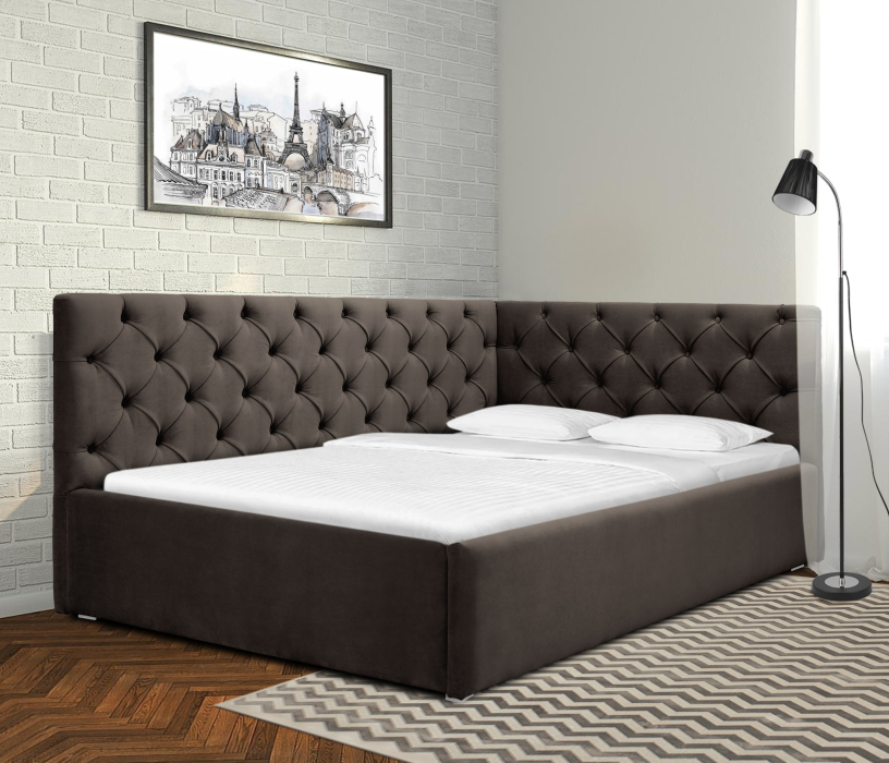 Отзывы о Столплит Кровать с мягким изголовьем угловая Оливия 900, микровелюр Коричневый