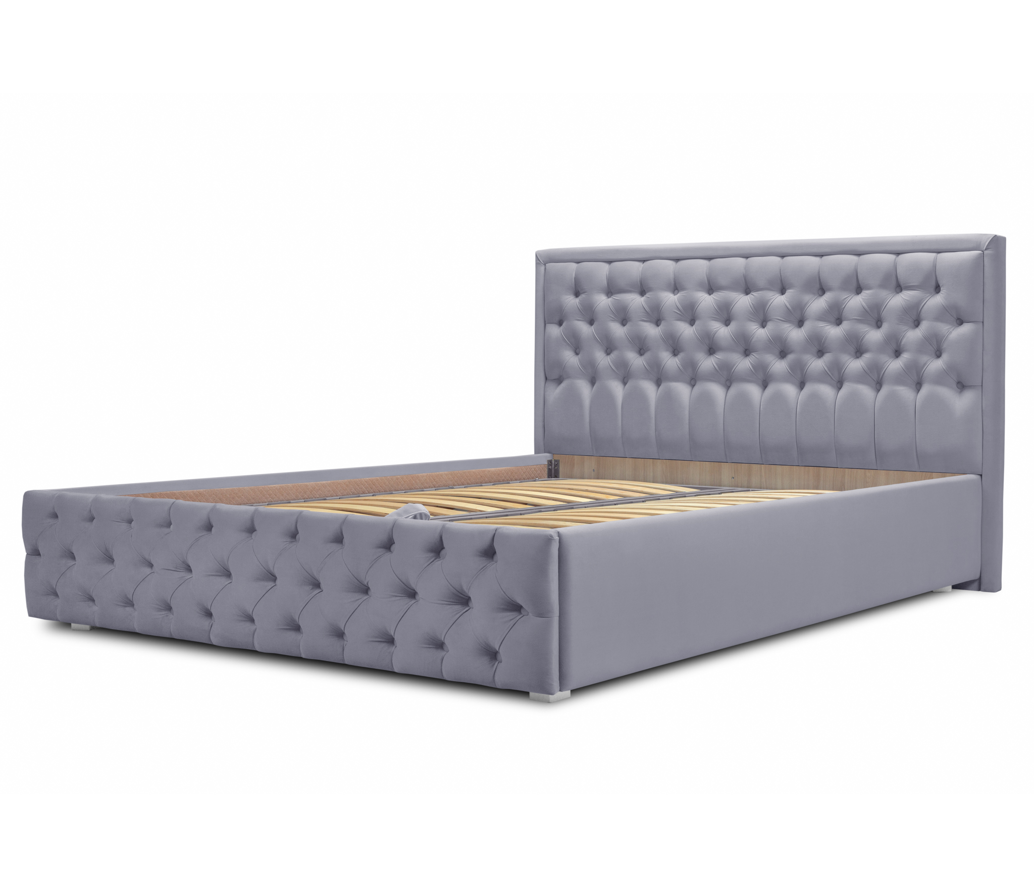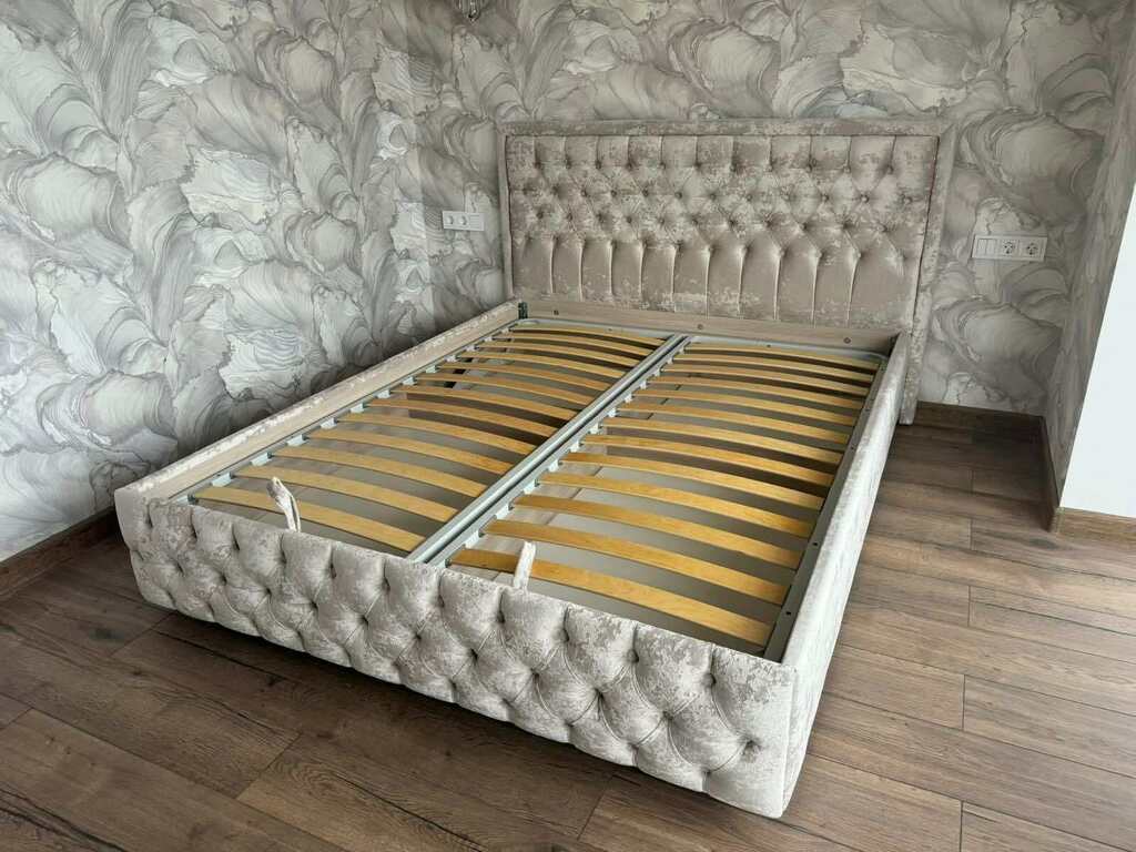 Обивка кровати выполнена в качественном велюре, с отличными техническими характеристиками.