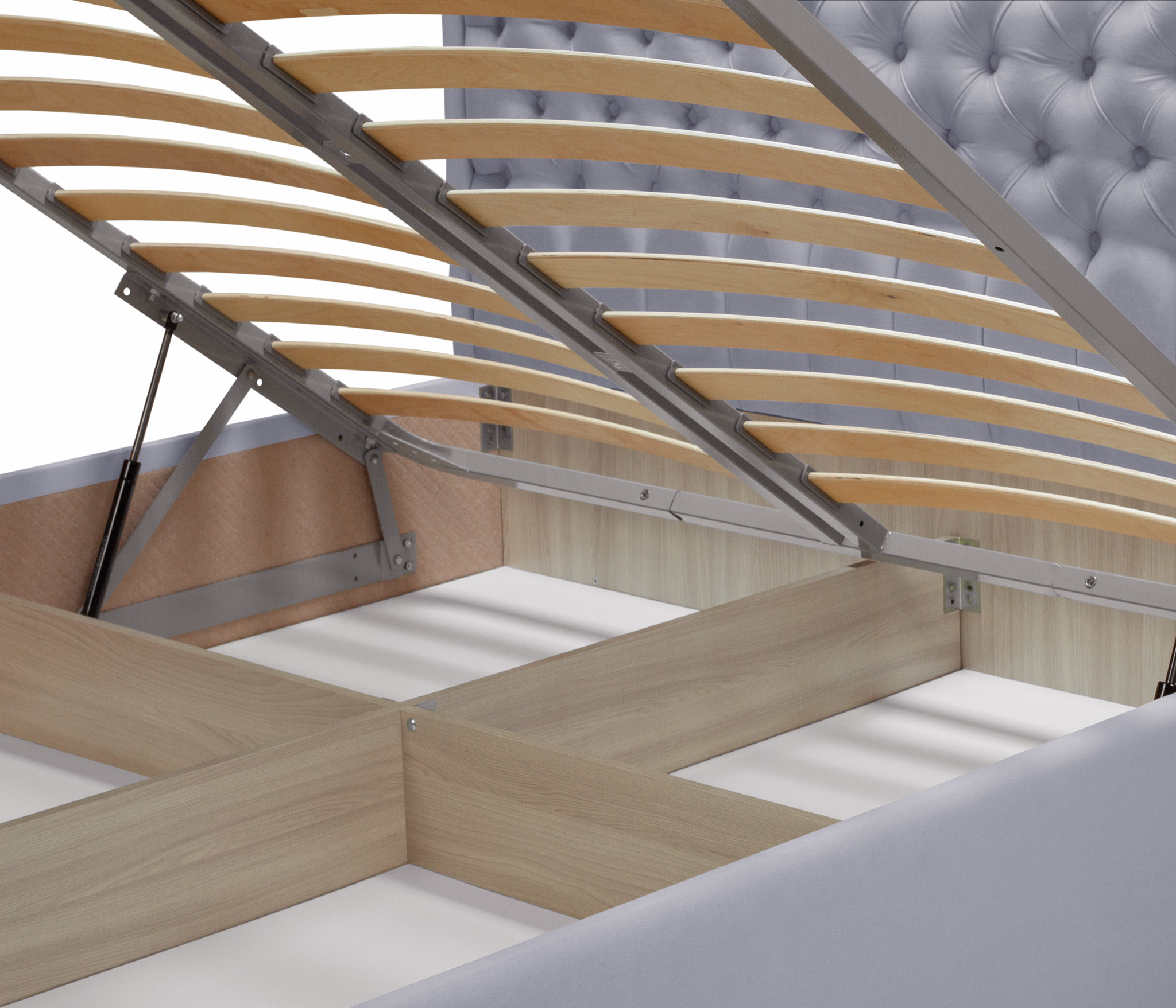 Спальное место имеет ортопедическое основание и оснащено подъемным механизмом.