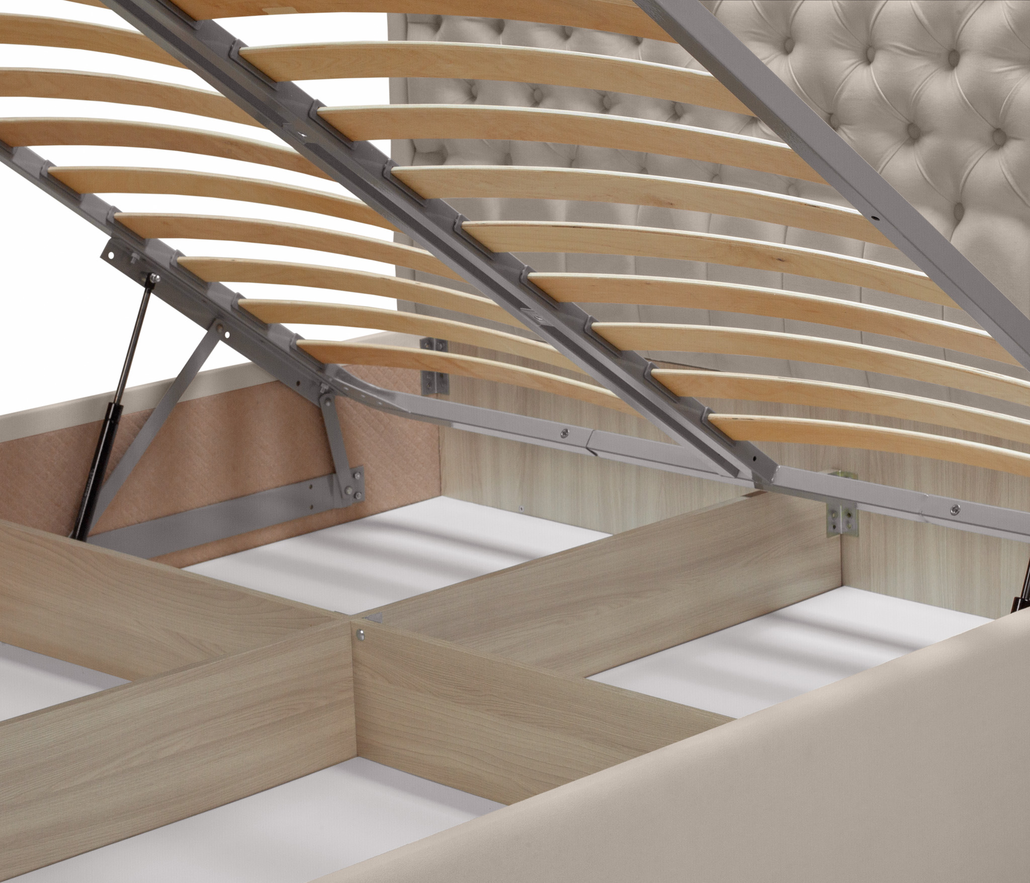 Ортопедическое основание оснащено подъемным механизмом и газлифтами для вашего удобства.