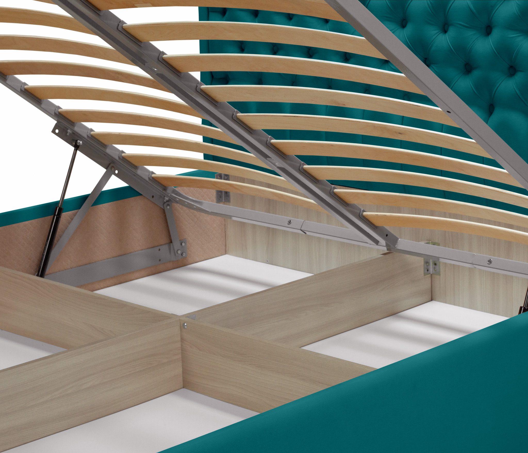Большой и вместительный ящик по ширине спального места для хранения.