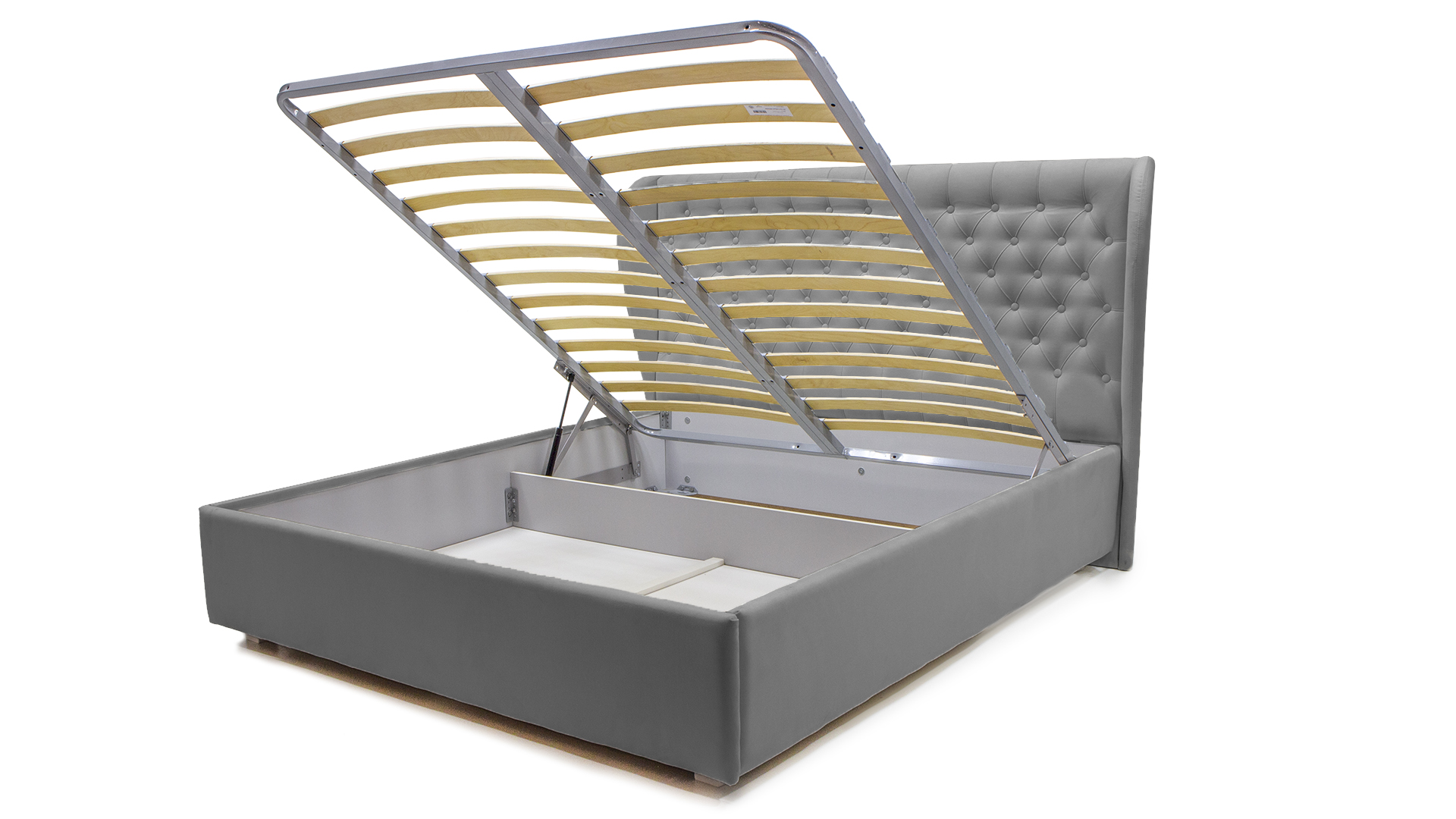 Подъемный механизм позволяет вам без труда поднять спальное место и получить доступ к большому ящику для хранения.