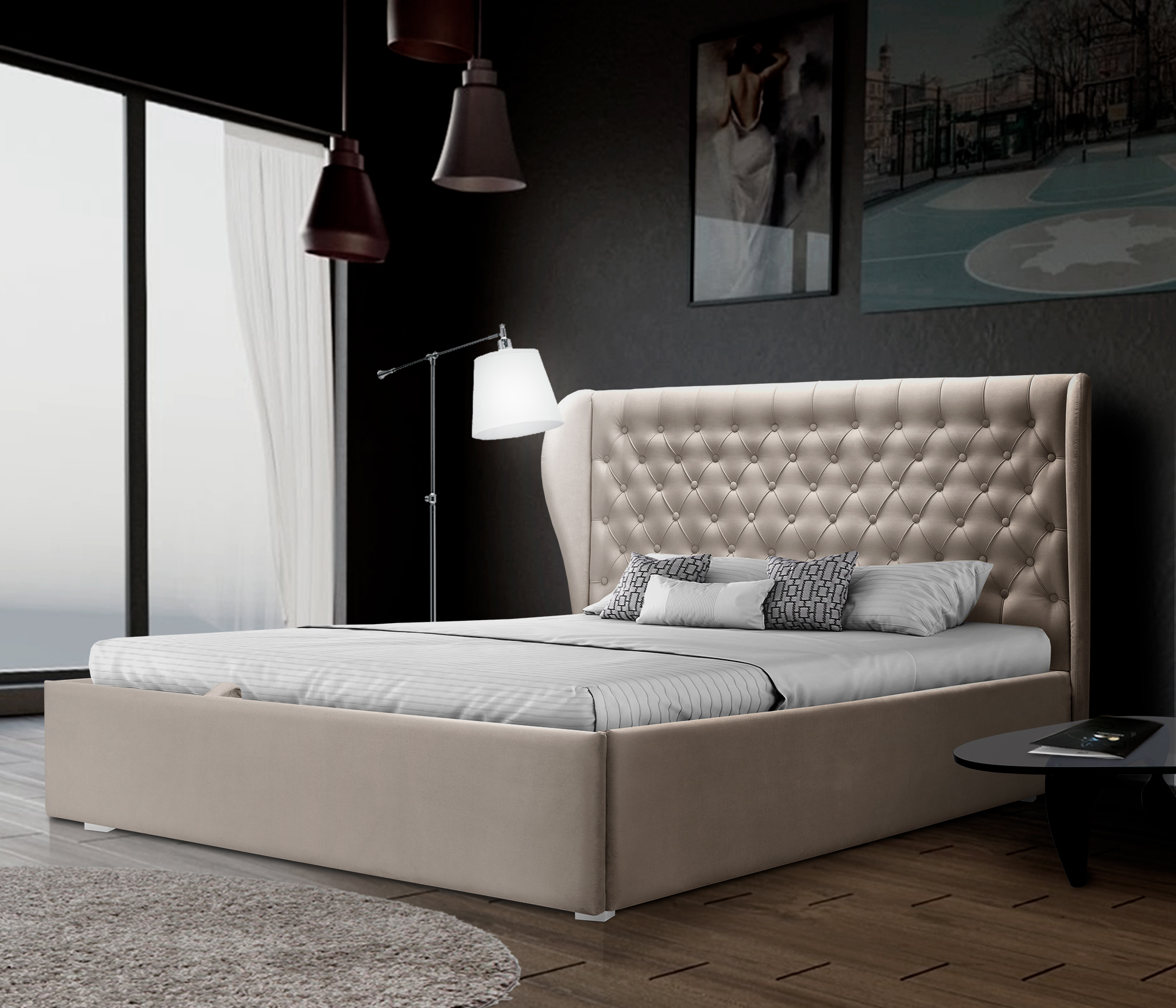 Кровать с мягким изголовьем Мишель 1600 с подъемным механизмом, микровелюр (Кремовый) Код I0000234854