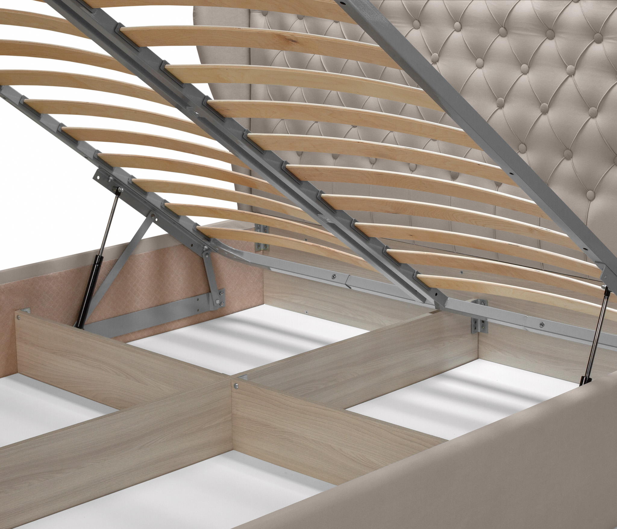 Подъемный механизм позволяет вам без труда поднять спальное место и получить доступ к большому ящику для хранения.