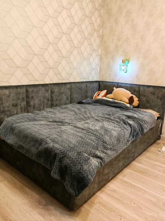 - Объемное изголовье, которое создает дополнительный уют и комфорт;