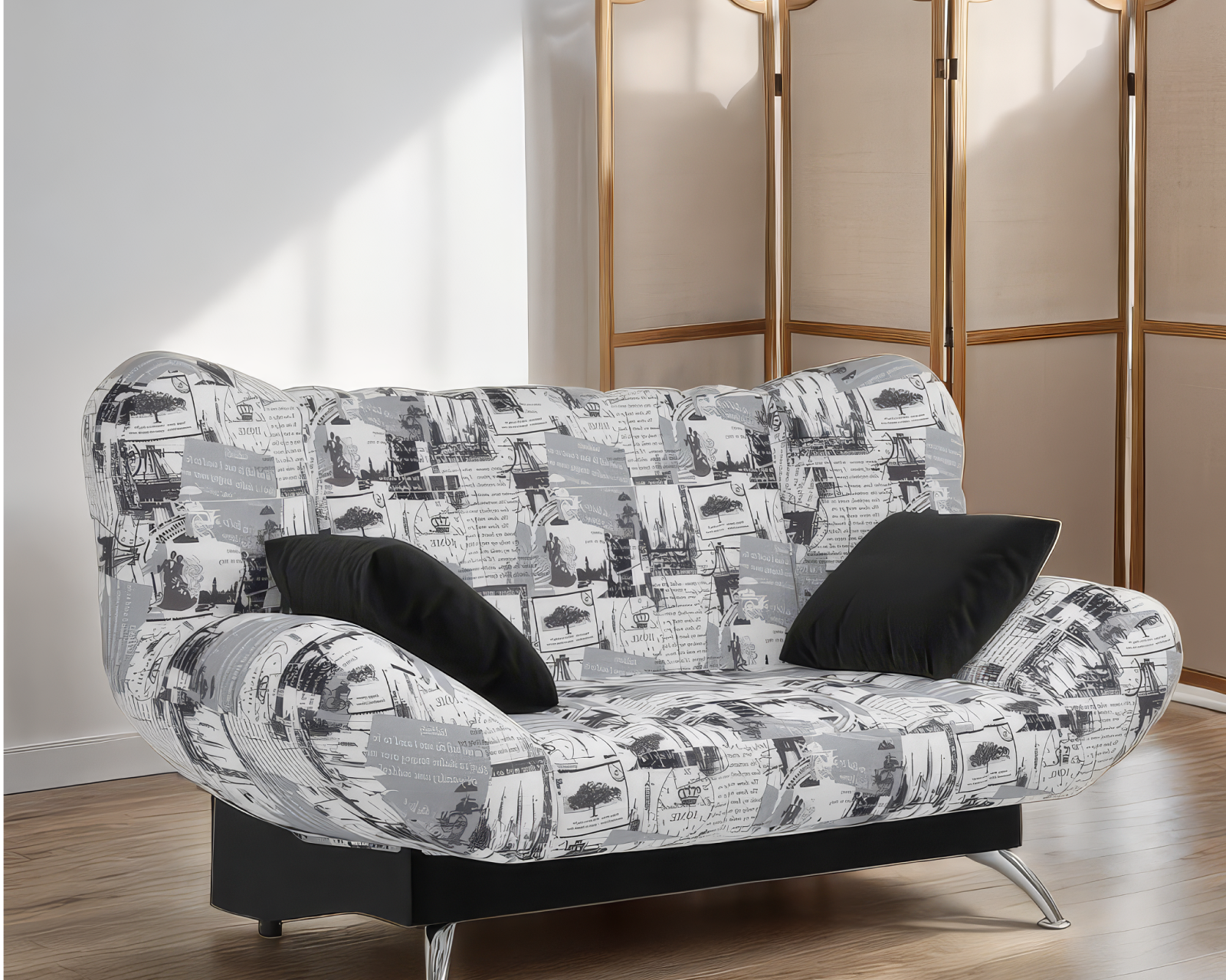 Высокие металлические ножки придают дивану современный и стильный вид, что делает его отличным акцентом в интерьере. Две декоративные подушки добавляют дополнительный комфорт и приятные акценты.