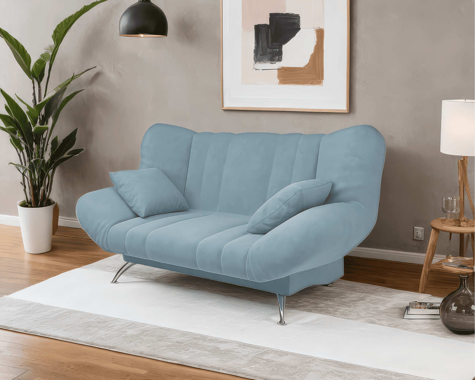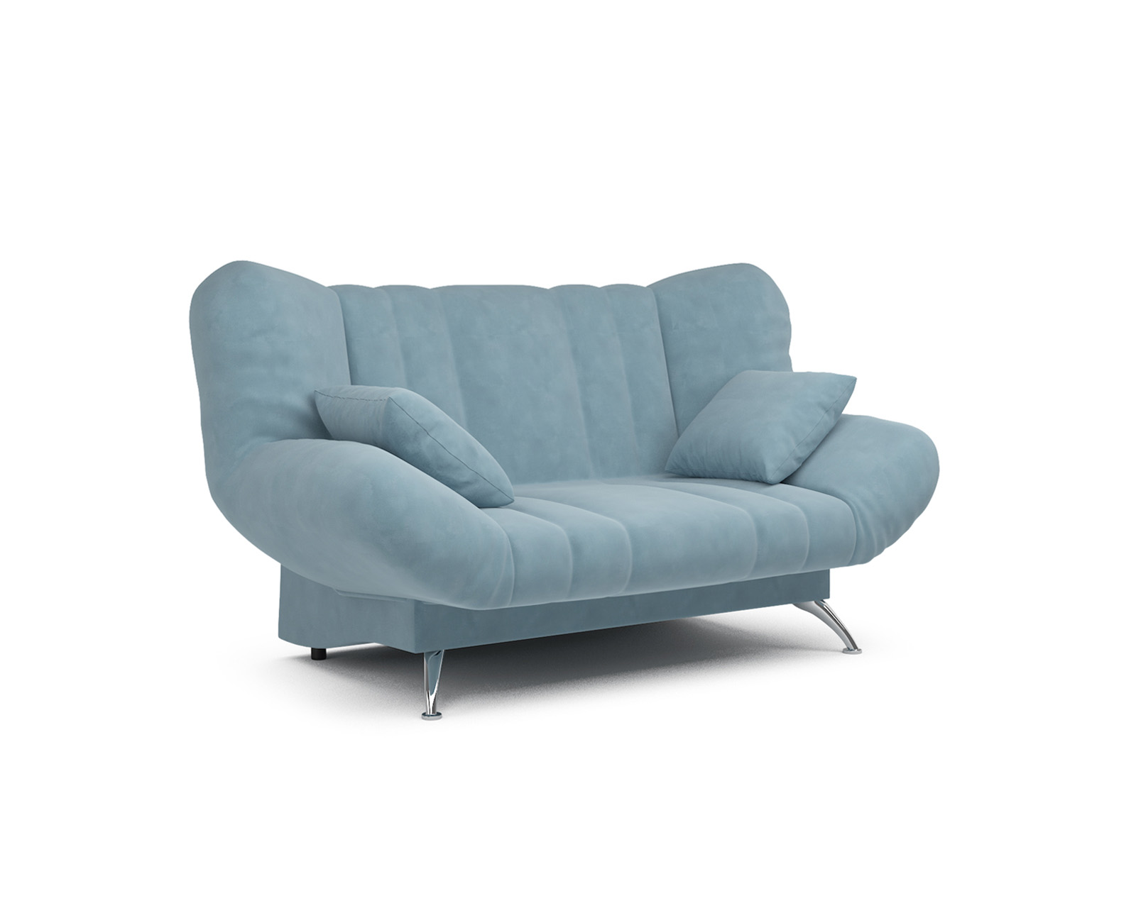Высокие металлические ножки придают дивану современный и стильный вид, что делает его отличным акцентом в интерьере. Две декоративные подушки добавляют дополнительный комфорт и приятные акценты.